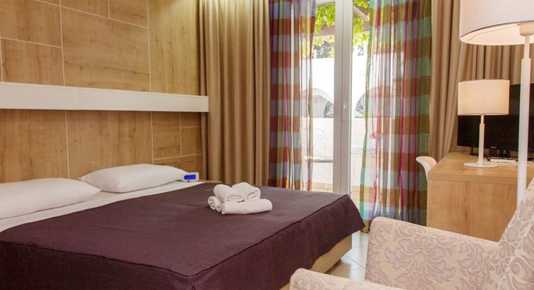 APP 02+2 (3*): дві спальні ( французьке ліжко або окремі ліжка), міні-кухня, маленька вітальня з диваном і столом (у деяких номерах немає дивана), душова кабіна, тераса. Розміщення – хв. 3 чол.