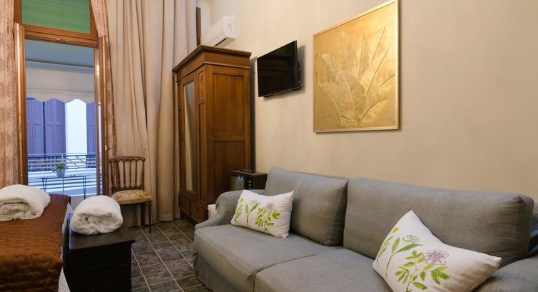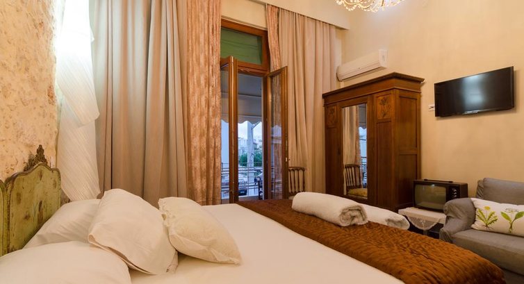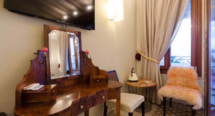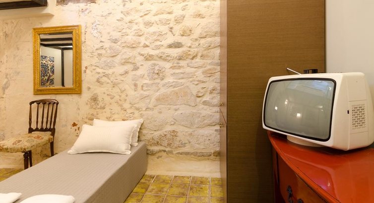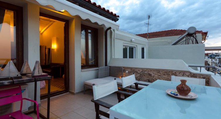 Типи номерів: • Ammos Maisonette (37 м2, вид на сад, море, 2 спальні, вітальня) • Ouranos Maisonette no balcony (28 м2, вид на сад, море, 2 спальні, вітальня, балкон відсутня) • Minare Town View (22 м2, вид на сад, море, спальня, вітальня) • Suite Faros (вид на сад, море, 23 м2, спальня та вітальня)У номері: • душ • капці • супутникове ТБ (є російські канали) • міні холодильник • кондиціонер (платно) • Wi-Fi (безкоштовно)