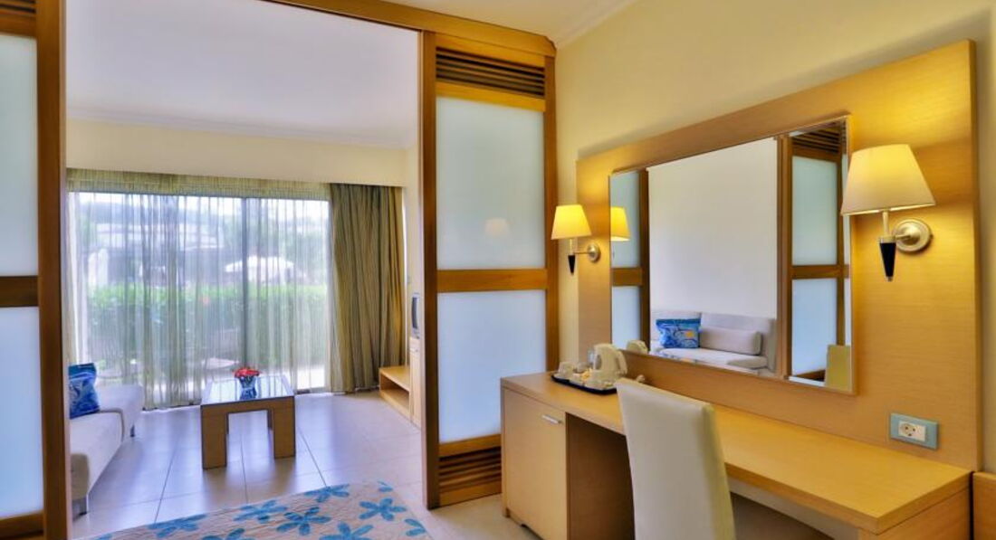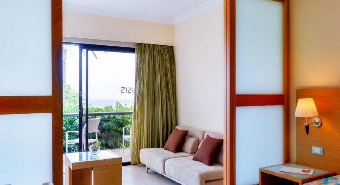 family room SV (вид на море, однокімнатний номер, спальня та зона вітальні, осн. ліжко – двоспальне або 2 односпальні, дод. – розкладний диван або дворівневе ліжко, макс. 3+1 чол., 26 м2).