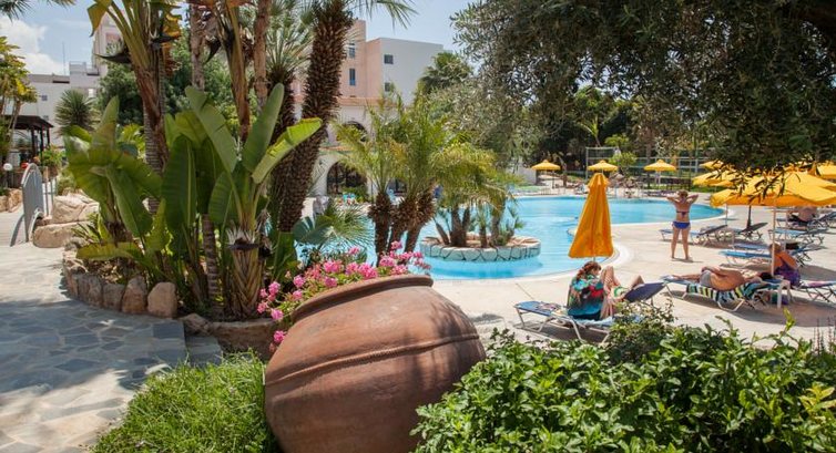 Доброго времени суток! Посещала данный отель в мае 2016 года. Отель произвел благоприятное впечатление. Небольшая аккуратная территория, новый стильный дизайн( последняя реновация в 2015 г.)Номера чистые и просторные. Отель удобно расположился в центре города, но в то же время в тихом и спокойном месте, в шаговой доступности бары, кафе, рестораны. Пляж "Фарос" в 1км. от отеля, как правило большинство туристов отправляются на самый популярный и по совместительству единственный песчаный пляж, Корал Бей. Добраться до него можно на общественном автобусе(2- 2,5евро), либо на такси(10-15евро). Есть небольшая команда аниматоров, которая не дает скучать как днем так и вечером. Для детишек имеется два открытых бассейна и мини- клуб.