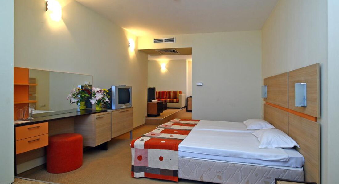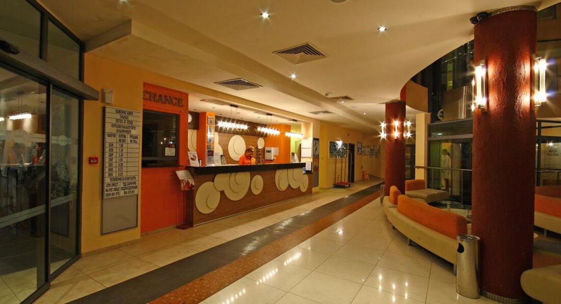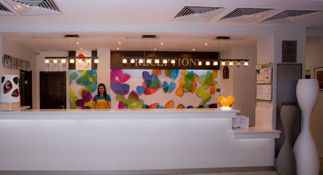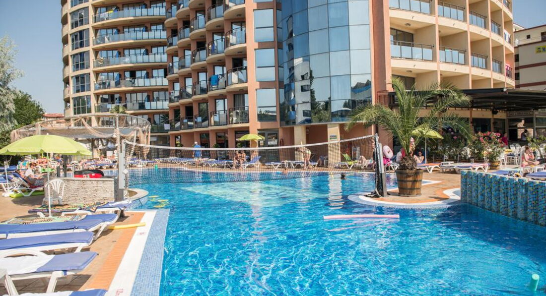 Ездили в июне с мужем отдыхать в этот отель. Трансфер был замечателен, сразу встретили, через полчаса привезли в отель. Заселение было с 14 часов, а мы приехали в 7 утра. На ресепшене нам сказали,что могут в 10 заселить без дополнительных денег. Мы дождались этого времени, девушки на ресепшене поменялись к этому времени, и теперь другая с нас потребовала 120 евро за раннее заселение, мы отказались и остальное время гуляли по городу. Номер с удобствами, хороший, есть холодильник, телевизор, кондиционер. Душ был ужасный, вода выливалась на пол и весь день стояла. Уборка в номере каждый день, смена постельного белья 2 раза в неделю, ежедневное для поленцев, все чистое. Питались мы "все включено" очень вкусно, выбор большой, каждый найдет то,что нравится, в неделю 3 тематических ужина. Пляж общий, но очень чистый, лежаки там платные 8 лв (200 рублей). На территории отеля есть бассейн, лежаки там для нас были бесплатные, плюс выпивка и мороженое около него было включено. Анимации не было, поэтому молодым людям довольно скучно, хотя рядом с пляжем есть много клубов. В целом отель на 4. Не стоит в Болгарии брать отели ниже 4 звезд, знакомые были не очень хорошего впечатления от таких. И ездить лучше в июле, погода намного теплее и море тоже. Хорошего всем отдыха!