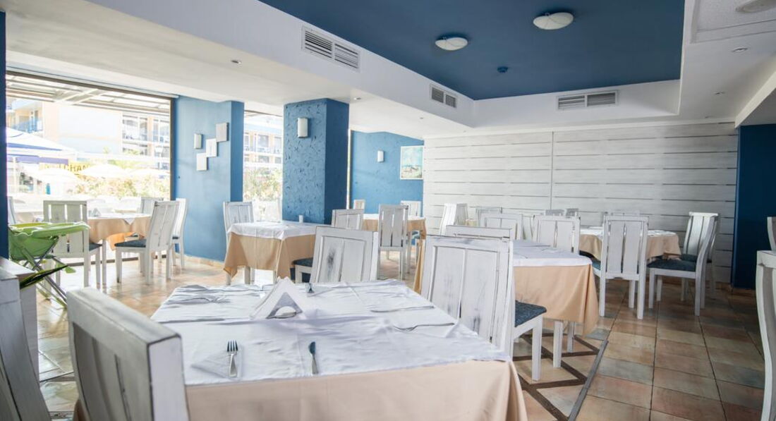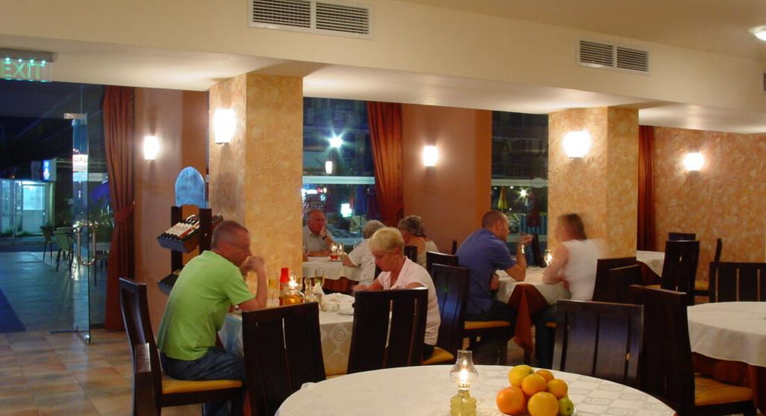 Ресторан, где будут проходить ваши завтраки и ужины, расположен на 11 этаже и имеет остеклённую террасу с красивым видом на море и близлежащую территорию. Отличное питание - вкусное мясо, рыба, кальмары, лазанья, паста и многое другое. Всегда в достатке фрукты, свежие овощи и десерты, в т.ч. мороженое ( Фрукты - черешня, клубника, персики, нектарины, абрикосы, яблоки, бананы, апельсины, арбузы)