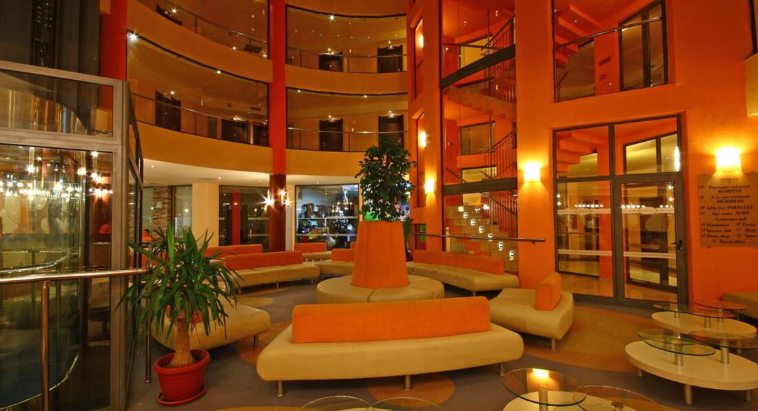 Отдыхали с мужем в сетябре 2016. В Болгарии были в первый раз. В отель прибыли в 11 вечера и на ресепшн девушка сообщила, что свободных мест нет и на 4 ночи определили в соседний отель Дунав. Так как мы брали НВ,нам предложили из за этого конфуза до конца отдыха "все включено". После 4 ночей в Дунаве,мы переехали в Меридиан. Дали нам 504 номер,Окна которого выходят на бары и рестораны(в которых до 5 утра гуляет народ,шум,крики,музыка)