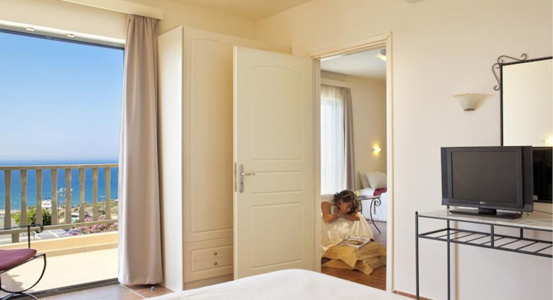 family room SV (вид на море, спальня та вітальня з дверима, осн. ліжко – двоспальне, дод. – 2 односпальні ліжка, макс. 4 чол., 42 м2),