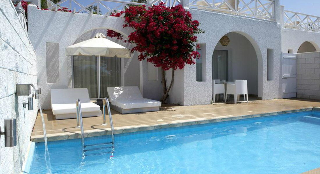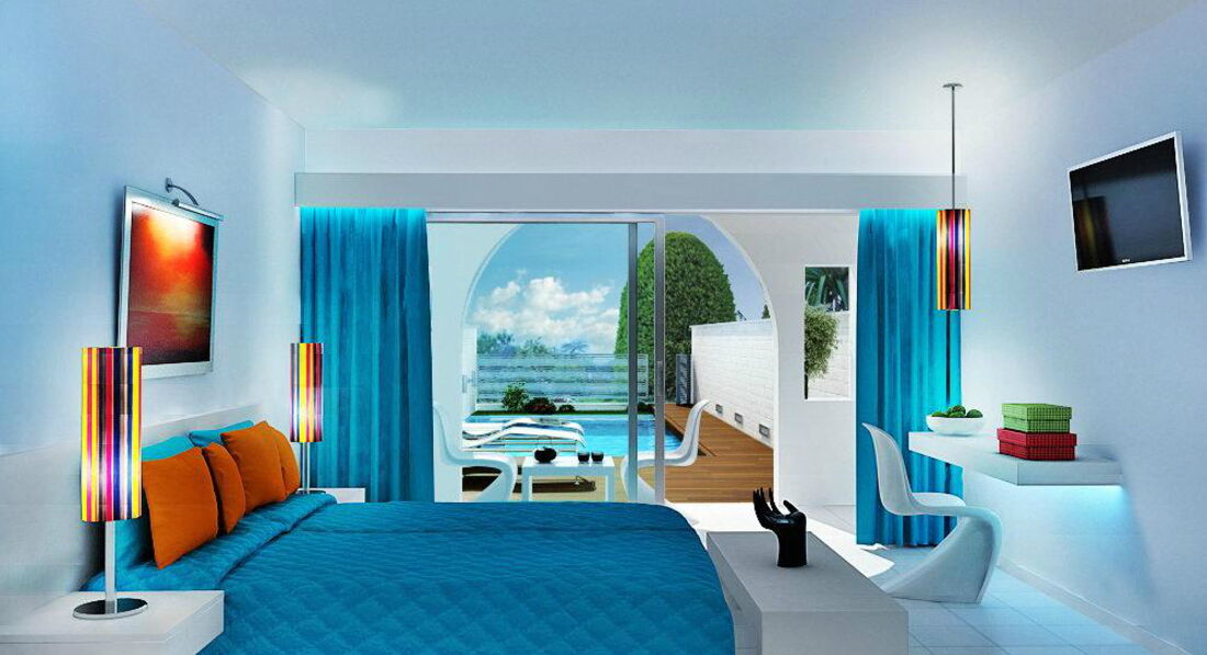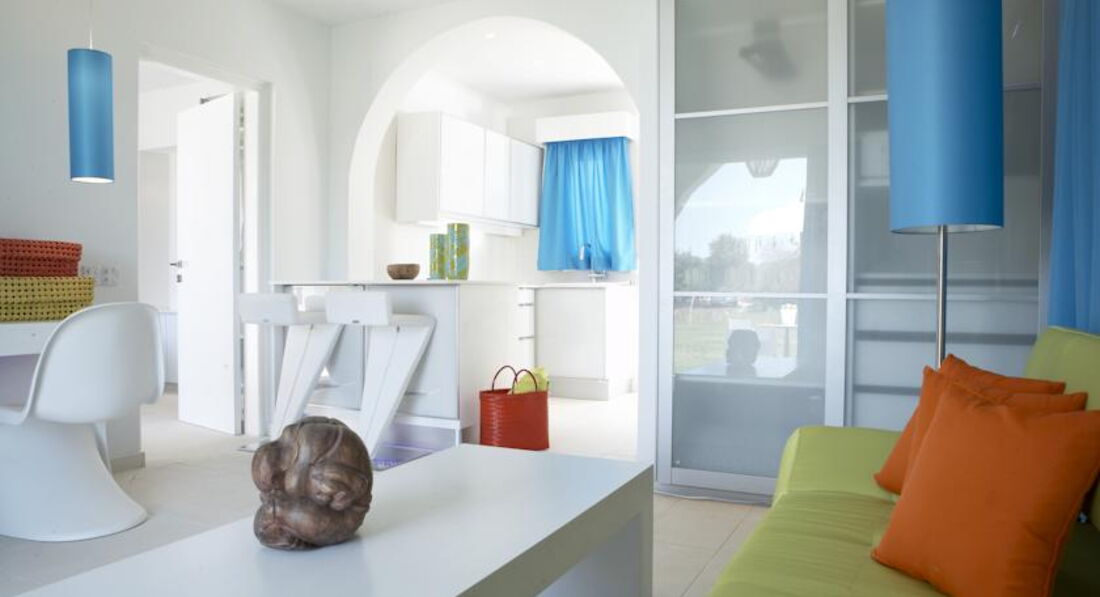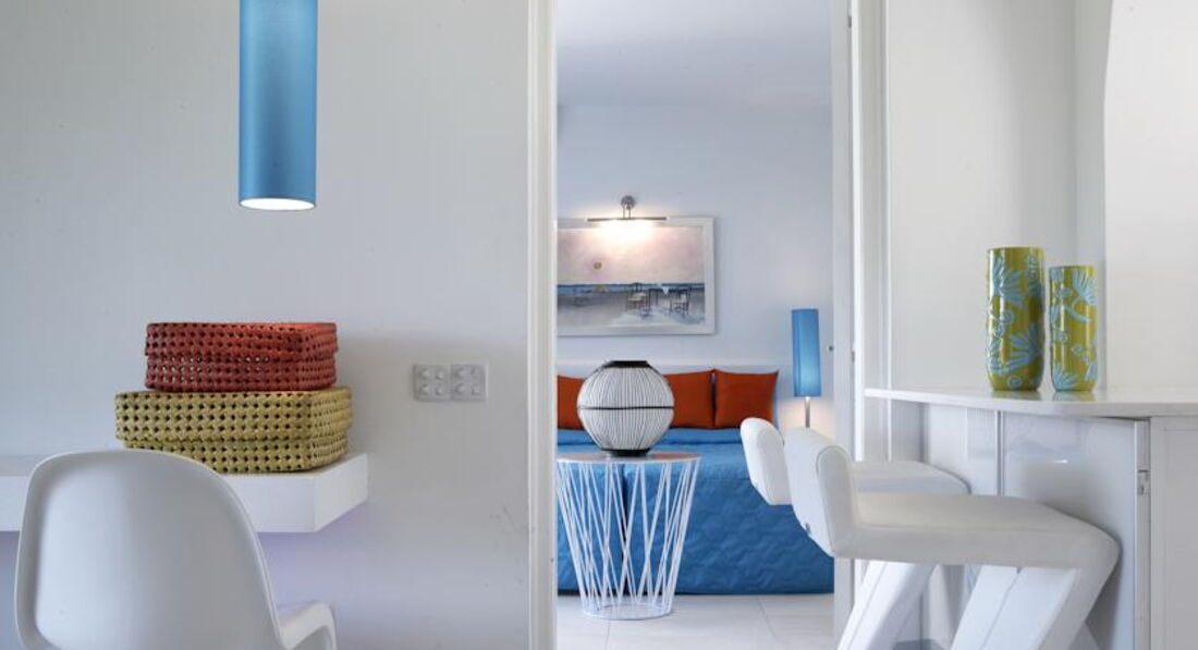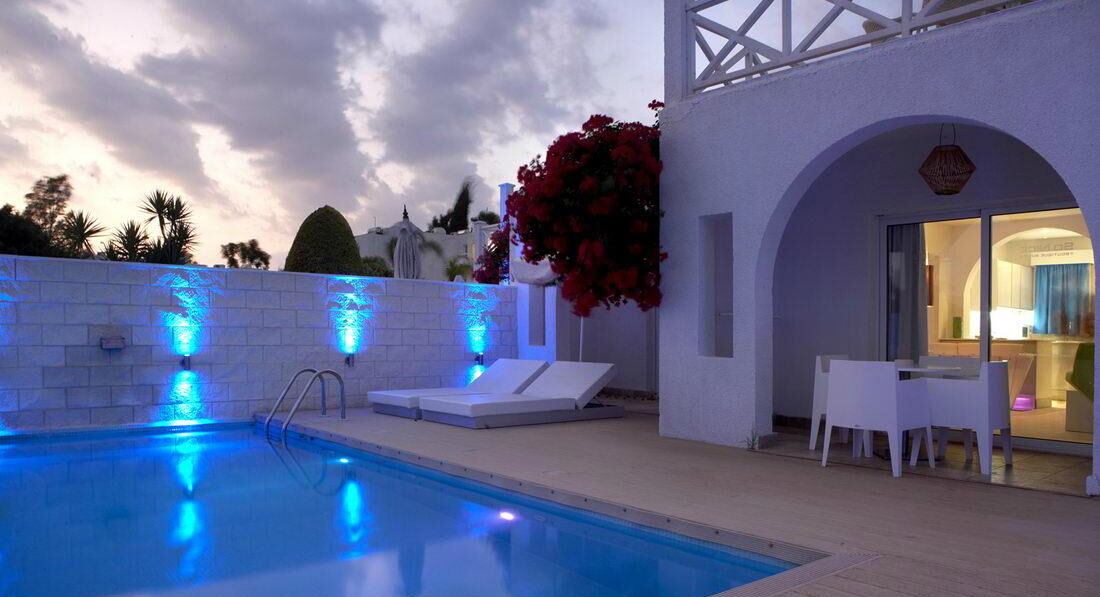 Beach Junior Suite (макс. 3 чол., 30 м2) – однокімнатний номер, приватний міні-басейн з лежаками, джакузі та тераса на даху, міні-кухня.