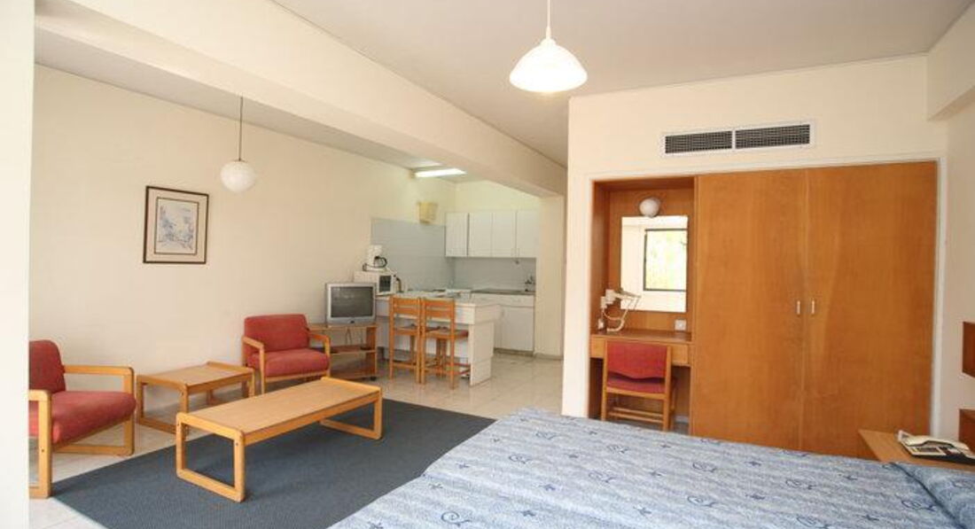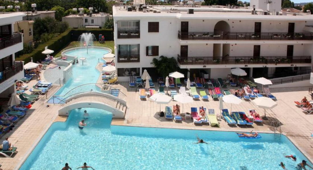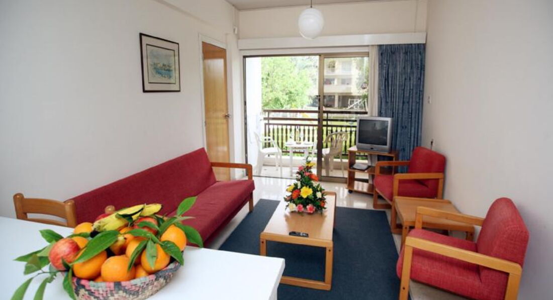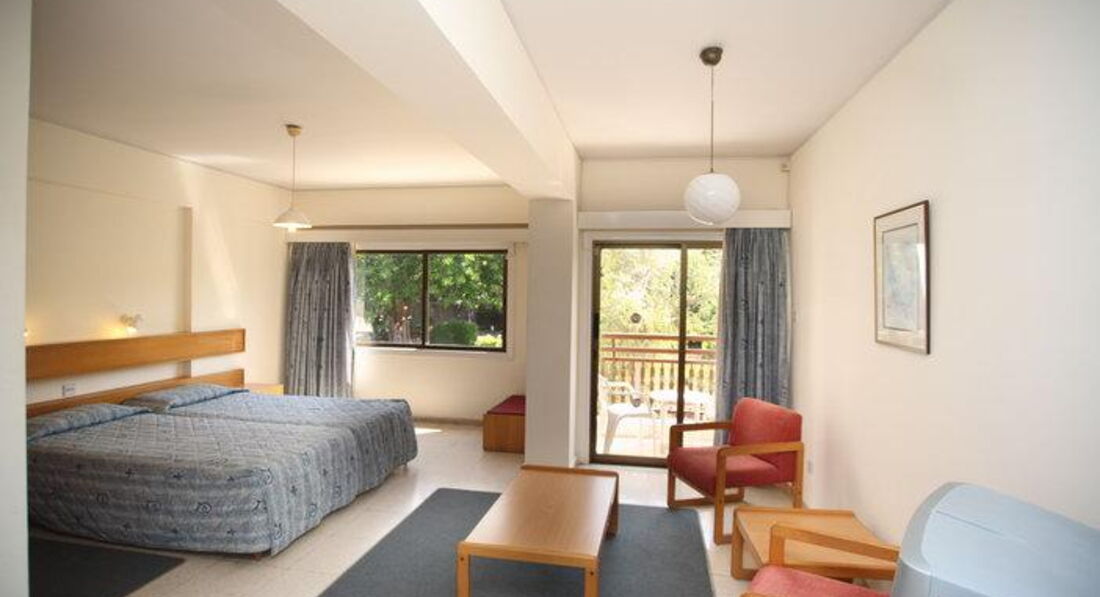 Отдыхали в отеле в июле 2016г с малышом. Хочу отметить сразу, состояние отеля сильно отличается от отельных фото, которые были сделаны лет 15 назад. Все очень скромно. Из плюсов: светлый чистый номер с ванной и кухонным уголком. Есть кофеварка, тостер, чайник, микроволновка, древний, еле морозящий холодильник и плита с посудой на две персоны; фен; мыло в ванной; по 2 полотенца на человека; для малыша поставили манеж. Бесплатный vi-fi в номере. Уборка Ежедневно, смена полотенец по требованию. ТВ плоский, но с 8 каналами. Есть бассейн открытый, для детей лягушатник. Дет.площадка очень старая в темном углу. Персонал доброжелательный, отзывчивый, по просьбе спешит на помощь. На ресепшне помогли быстро вызвать такси и отвезти ребёнка в больницу. Персонал говорит на английском и русском языках. Место расположения удобное- в центре Като, до пляжа пешком 10-15мин. Столько же и до супермаркетa papantoniou, пафос Молла. Много доступных баров, кафе и магазинов.