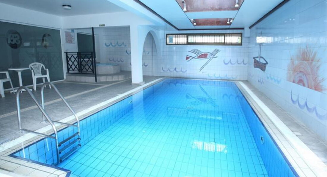 Минусы: пришлось ждать заселения в номер 2 часа; еда дороже, чем в любом кафе. (Предпочитали есть в кафе на пляже слева от китайского ресторана. Цены: мезе 17евро, мусака 12, супы 5, салаты 6-10евро, порции очень большие, если заказать рыбу или мясо, подадут вместе с гарниром, овощами, хлебом.) старая мебель, нет банных принадлежностей, не дают питьевую воду бесплатно, есть сауна, тренажёрный зал, но не работают.