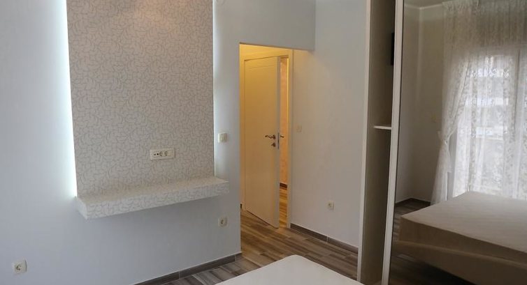 STUD 03: Кімната, поєднана з кухнею, санвузол та тераса. Двоспальне та односпальне ліжка, кондиціонер, телевізор (кабельне ТБ), кухня (електроплита, мийка, холодильник), фен, сейф, телефон, вихід на терасу. Санвузол: туалет та душ. Усього 3 апартаменти подібного типу: з видом на море, гори та двір.