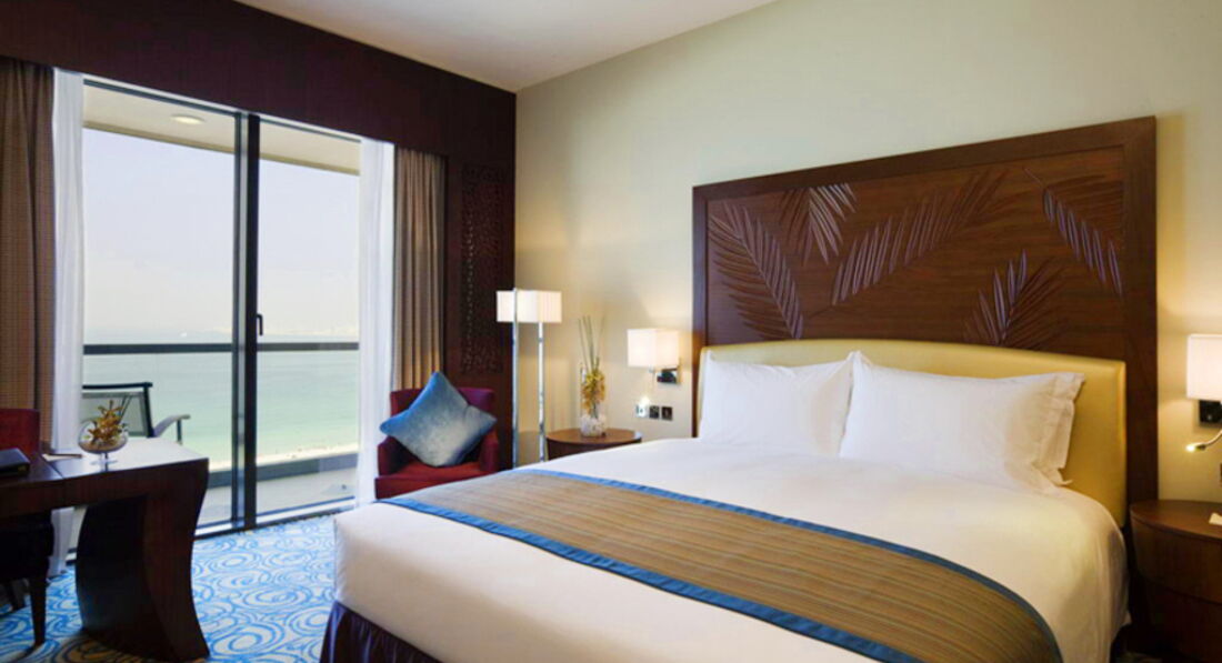 Заселили быстро, депозит 1000 дирхам, дали номер с боковым видом на море, порадовал балкон, большая редкость для Дубая. Из недостатков в номере, в кабинку душа дверь закрывалась неплотно, и всегда набегала лужа вода. Интернет в номере, как и во всем отеле, ловит замечательно, даже на пляже можно подключиться к открытой сети. Завтраки нормальные, не хватало только красной рыбы, и больше зелени. Стоимость обеда в ресторане 120 дирхам с горячим, и 80 дирхам салаты и сладкое. Ужин 150 дирхам, с алкоголем, кажется 250. За дочь на обед и ужин денег не брали. В округе так же полно всяких кафешек и ресторанов. Заходили в «Paul» народу никого, в отличии ,что в Молл оф Эмирейтс столики почти все заняты. Плюс отеля, конечно же, близость к морю, после стройки на пляже, которая длилась два года, стало очень даже ничего. На пляж дают раскладной лежак с полотенцем, бутылку воды. Зонтик купил в спортивном магазине неподалёку за 75 дирхам. Понравилась сауна на третьем этаже, более менее горячая. На Марине запустили трамвайчик, и теперь с метро не надо идти пешком. Правда из-за него теперь там образуются пробки, у него приоритет перед машинами, и приходилось ждать по 2 красных на светофоре, пропуская 2 трамвая подряд. Вернусь в этот отель снова? Наверное да.