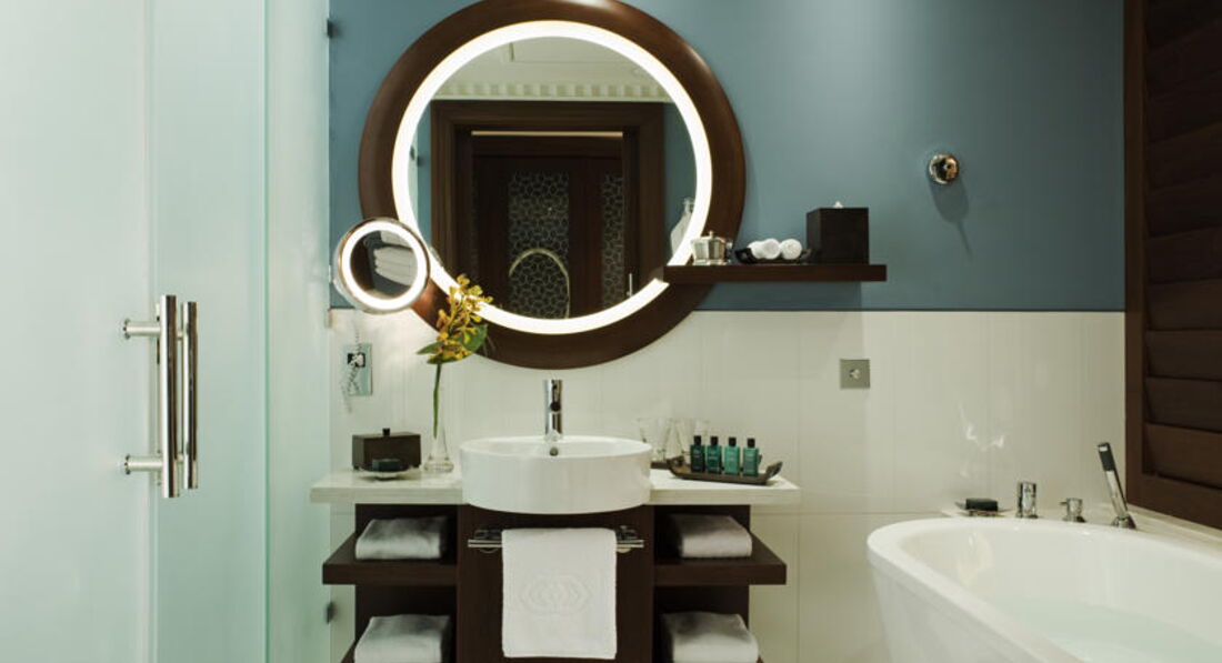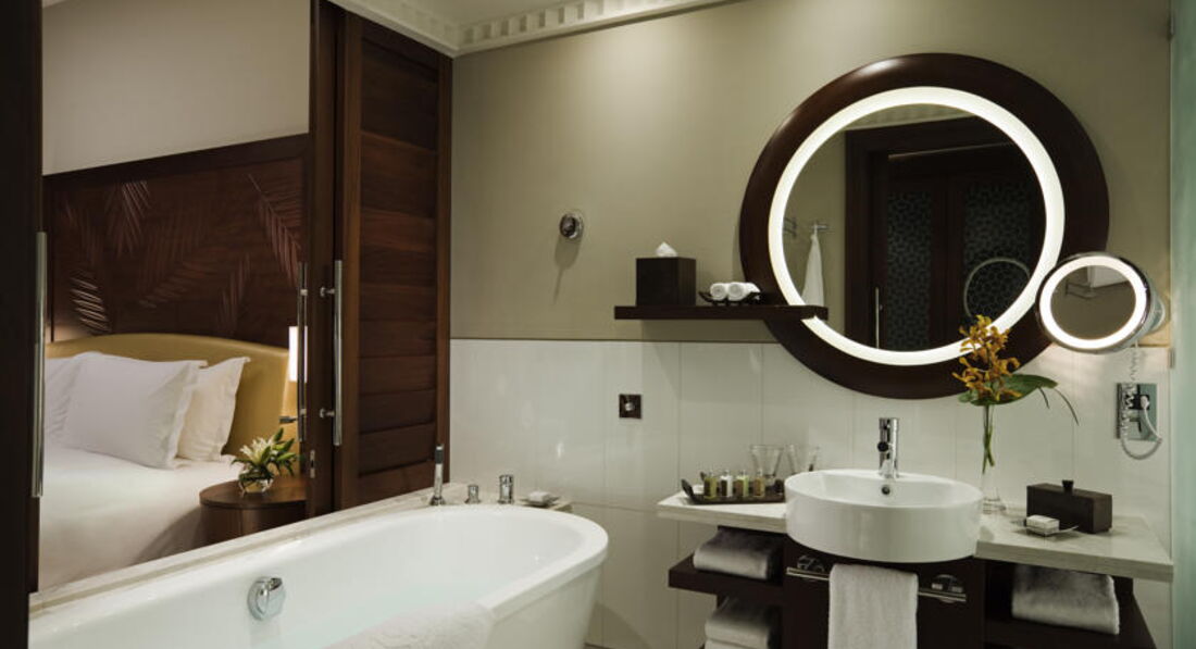 Интерьер отеля прекрасный — мрамор и палисандр. Отличный, современный. Номера стильные, но не большие, правда не тесно даже с учетом детской кроватки. Особый конёк — санузел с раздвижными дверями и вид с балкона(этажа с 12го). Приятный бонус — косметика Локситан(такую же притащили с собой). Детям отдельный банный набор и Для детей боле ничего нет. Правда на верхнем жилом ярусе аппартаментов есть большой детский клуб, но подробностей не знаю. Кстати, в отличие от Пальмы, деткам веселее на пляже Джумейры (детворы полно, песок приятный и теплее, ветра нет).