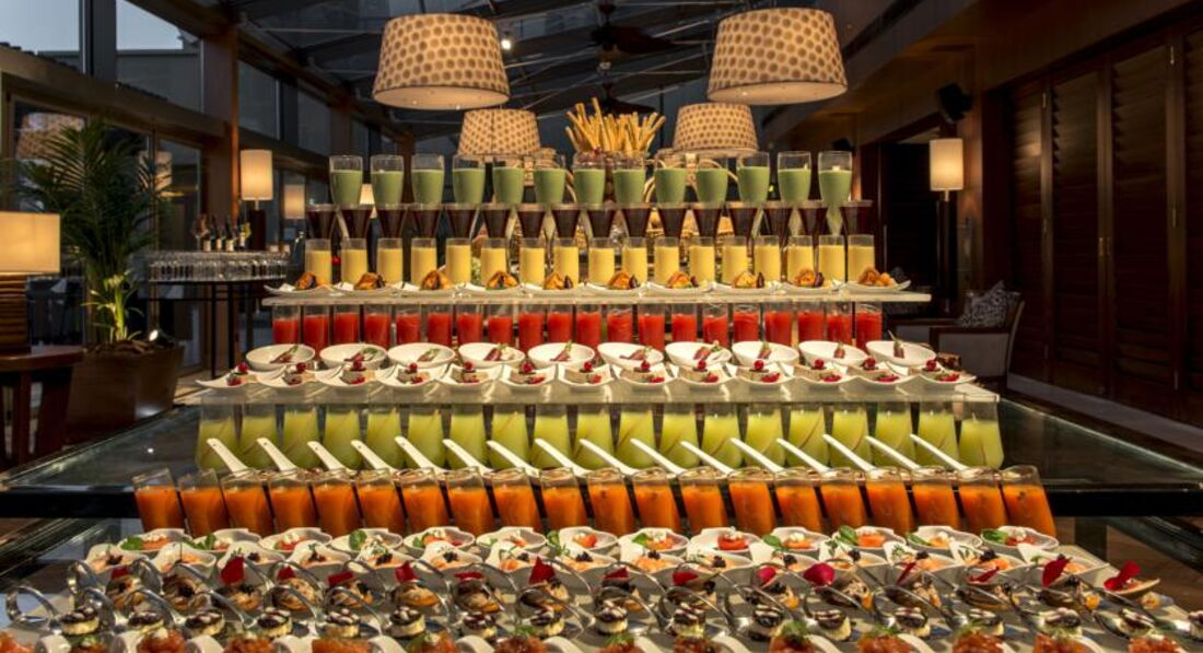 Еда на «отлично», особенно обрадует любителей сладкого, т. к. разнообразие и изысканность десертов поражает. Закуски и десерты по-французски малы, оформлены, видны старания. Завтрак однообразен по составу и стабилен по качеству. Ассортимент свежих соков, вплоть до составных «де-токс». Выпечка разнообразна, своя. Горячее уступает изяществу закусок\салатов, но всегда есть рыба, мясо, курица, овощи, паста(вкусно, но «аль денте» не бывает). Про алкоголь не знаю, трезвенники.