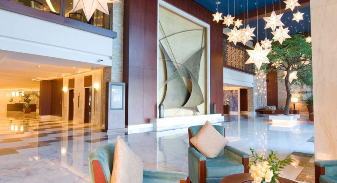 Отель несомненно достойный пятизвездник. Понравилось все-и искренне приветливый персонал, и кухня, и практически полное отсутствие соотечественников. Очень вкусная выпечка, свежевыжатый бесплатный сок, фрукты, мясо, рыба нескольких видов, разнообразие сыров на любой вкус. Пляж городской,но нам это особо не мешало. Если выбирали именно пляжный отдых, наверно, поехали бы в другой отель. Заселили нас быстро, без чаевых дали номер с видом на море с 17 этажа! В номере убирали по два раза в день, постоянно меняли шампуни, бальзамы,гели для душа (LOCCETANE). Особенно понравилось смотреть телевизор прямо из ванной. Гуляли по центральной улице, на которой находится отель. От отеля до моллов регулярно ходят бесплатные автобусы. Ну и "минусы"-из русскоговорящего персонала была только одна девушка, да и то не каждый день. И еще-около бассейна есть бар. Так вот, бармен, приготовив какому-то туристу коктейль, сначала решил его попробовать сам. Но это уже человеческий фактор.