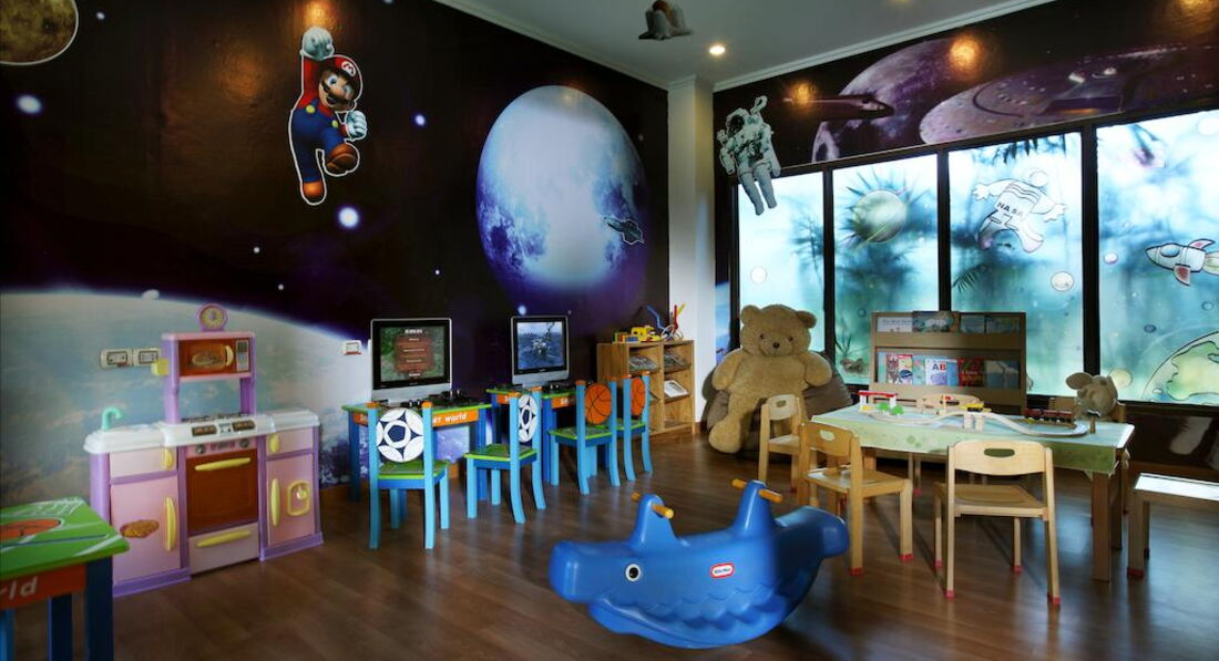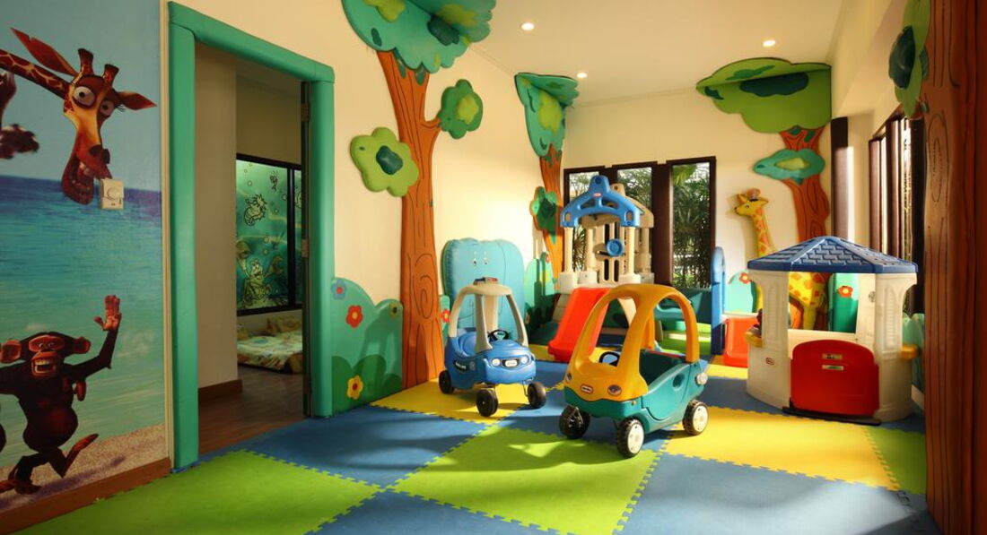 Для детей есть площадка и мини-клуб с тайскими девочками. Что-то они там делали с детьми...Футболки раскрашивали вроде. Там же стоит стол для пинг-понга.