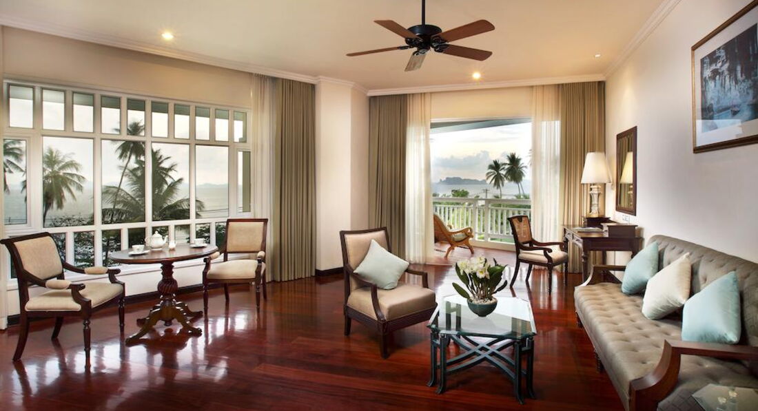 • дерев'яна підлога • кондиціонер • ТБ (є російський канал) • телефон • Wi-Fi (безкоштовно; високошвидкісний-платно) • сейф • стіл стілець • софа (крім superior) • міні-бар • 2 бут.води щодня безкоштовно • набір для приготування чаю/кави • роздільні душ + ванна (з туалетним приладдям) • праска, прасувальна дошка • балкон Територія та послуги: • 4 ресторани (індійський, італійський, тайський, міжнародний) • 2 бари • найбільший басейн у Таїланді (7000 кв.м, 7:00-19:00) • ліфт – у кожному крилі • 3 конференц-зали (до 500 осіб) • тенісний корт • шатл-бас до Аонанга • Wi-Fi у лобі (безкоштовно) • інтернет-куточок (безкоштовно) Розваги та спорт: • тренажерний зал (безкоштовно) • настільний теніс (безкоштовно) • теніс (платно) • водні види спорту (платно; каяки, віндсерфінг) • сауна (безкоштовно) • спа, масаж • міні-гольф (9 лунок, платно) Для дітей: • секція у басейні • міні-клуб • ігровий майданчик • дитяче ліжечко (за запитом, безкоштовно) • стільці в ресторані • няня (300++бат за годину за 1реб; після 18:00 – 500++бат) Живлення: • BB • HB • FB Пляж: Власна зона громадського піщаного пляжу. Парасольки, лежаки, пляжні рушники – безкоштовно.