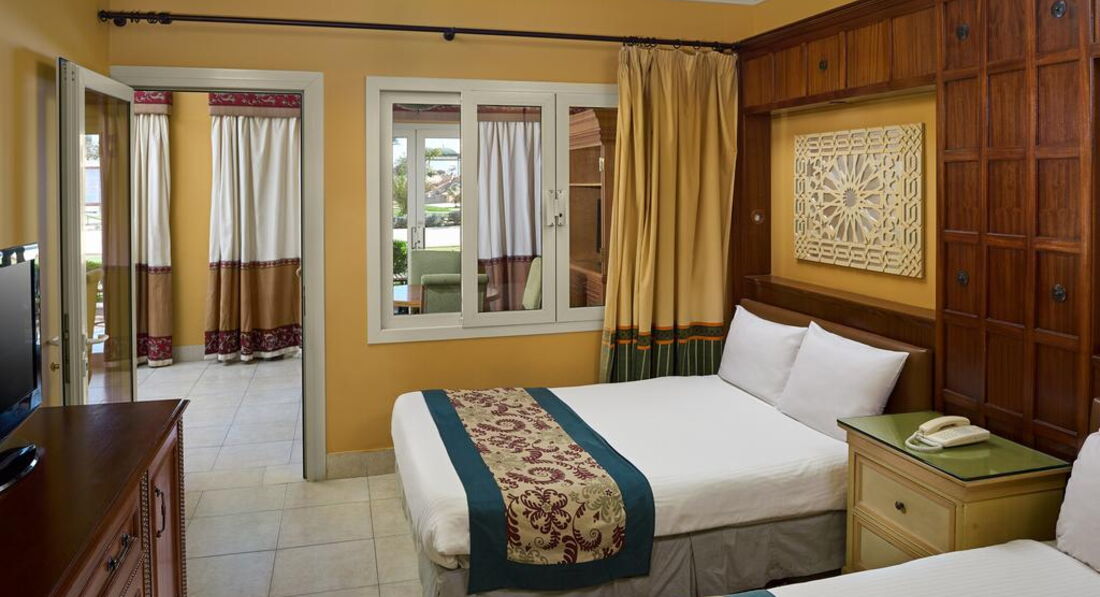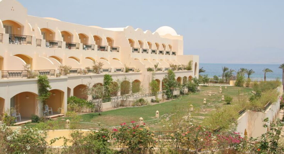 Витончені арки, склепінні стелі та куполи, мозаїка та арабески створюють абсолютно неповторний вигляд готелю, виконаний у вишуканому арабському стилі. Просторі номери з неймовірним видом на чотири держави (Саудівську Аравію, Йорданію, Ізраїль та, звичайно, Єгипет), доглянута зелена територія, гарне харчування та доброзичливий персонал зробили готель ідеальним місцем для відпочинку в атмосфері спокою, гармонії та умиротворення.