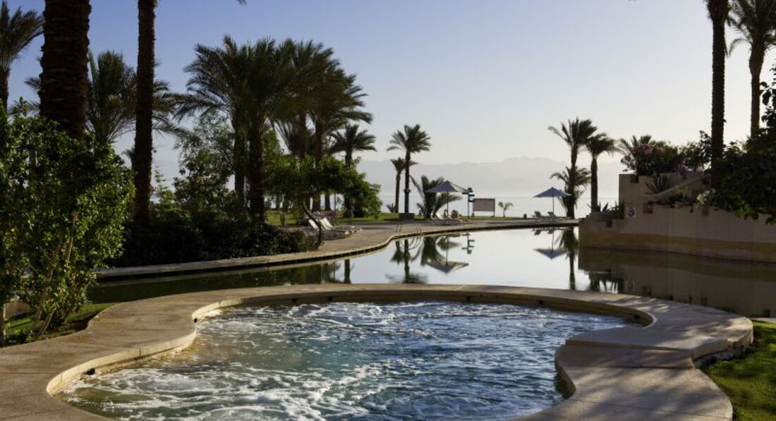 Отдыхали вдвоем с сыном (16 лет). Отель ухоженный, красивая большая территория. Приехали поздно вечером ,нас вкусно накормили, и быстро расселили. Номер с большой лоджией, видом на море, на другом берегу горит огнями Иордания (12км по воде). На завтрак выбор небольшой, но зато обеды и ужины всегда разнообразны. Много овощей и фруктов, рыба,кальмары, супчики, соусы,мясо вкусное и разное,выпечка. Море-чистое, с утра прохладное,но купаться можно, после обеда - супер, можно ходить купаться на понтон рядом, смотреть кораллы и рыбок маленьких и больших. Понравились аниматоры-веселые и позитивные, стрейчинг, волейбол, аквафитнес, восточные танцы ,скучно не было никому. Конечно же ездили в Израиль,от официального туроператора, впечатляющая экскурсия, Храм Гроба Господня, Стена Плача, река Иордан и купание в Мертвом море, очень понравилось (будьте внимательны в магазинах , которые вам рекомендуют, они обычно очень дорогие, возле Храма все значительно дешевле ). Сын ездил на квадроциклах по каньону, остался доволен . В целом, отдых нам понравился!