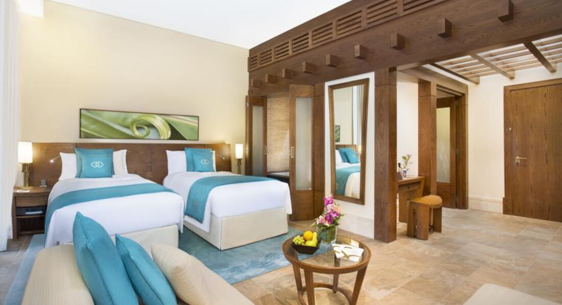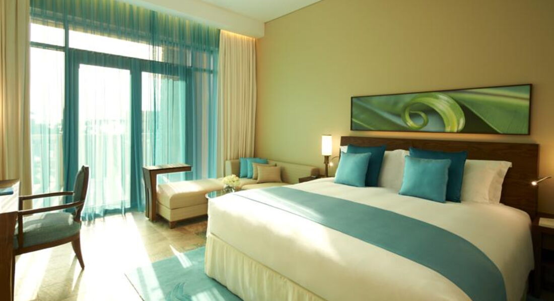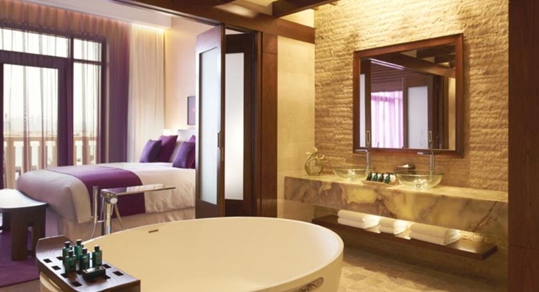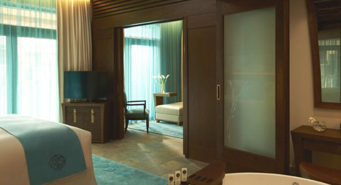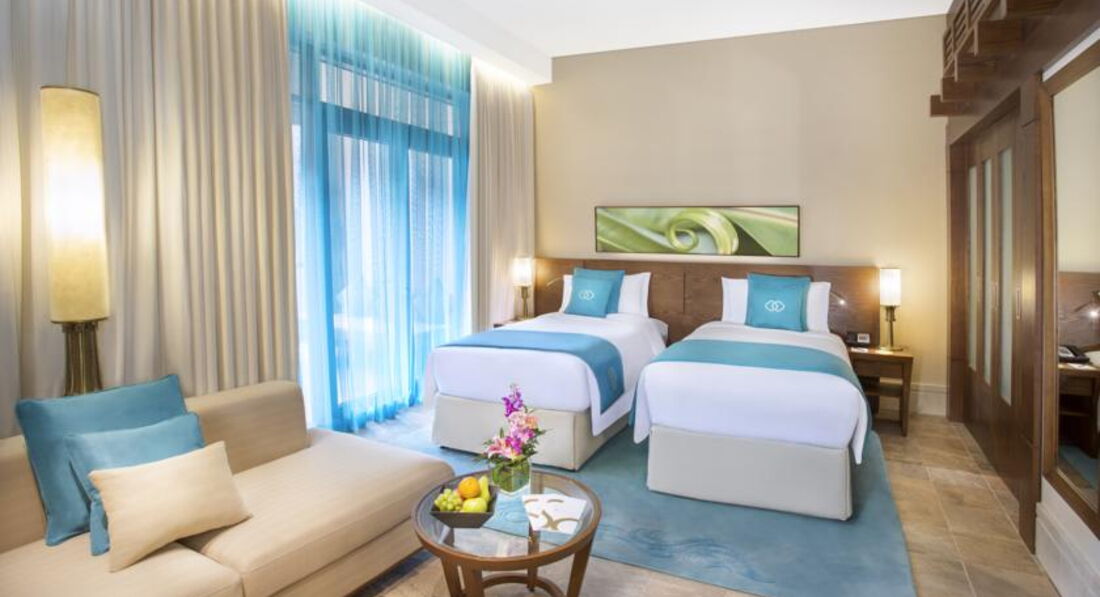 В отеле просто потрясающие апартаменты, как и все типы номеров имеют виды на Palm Jumeirah или на море, апарты в отдельных корпусах, с одной спальней или с двумя, минимальная площадь от 75 к.м.