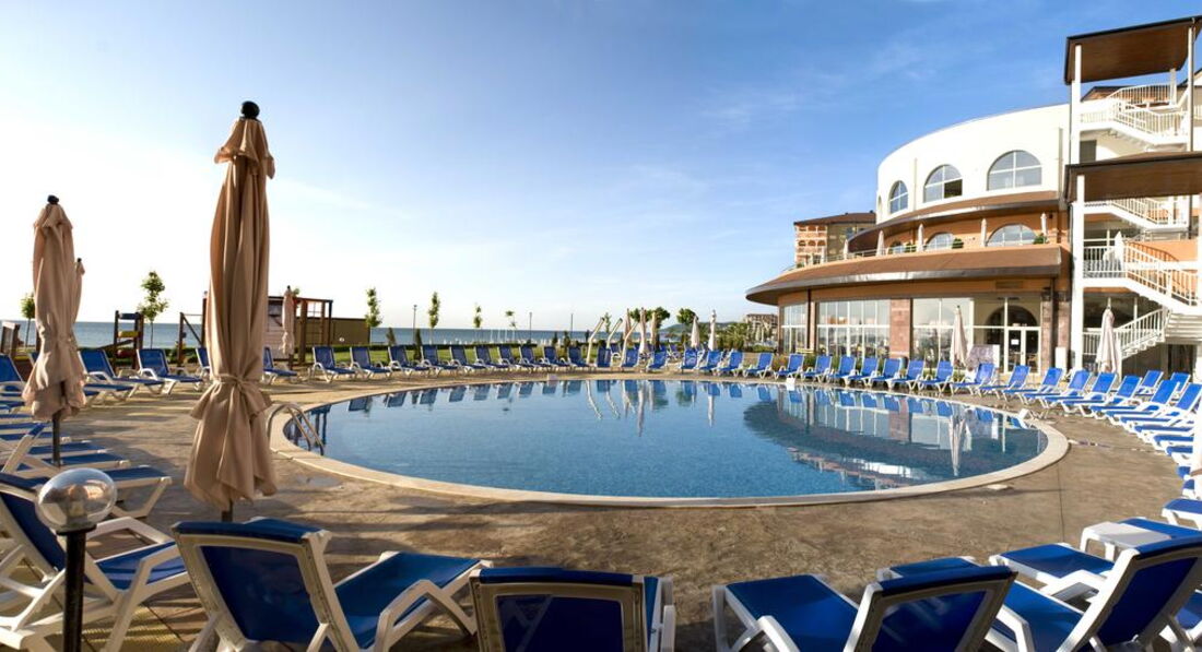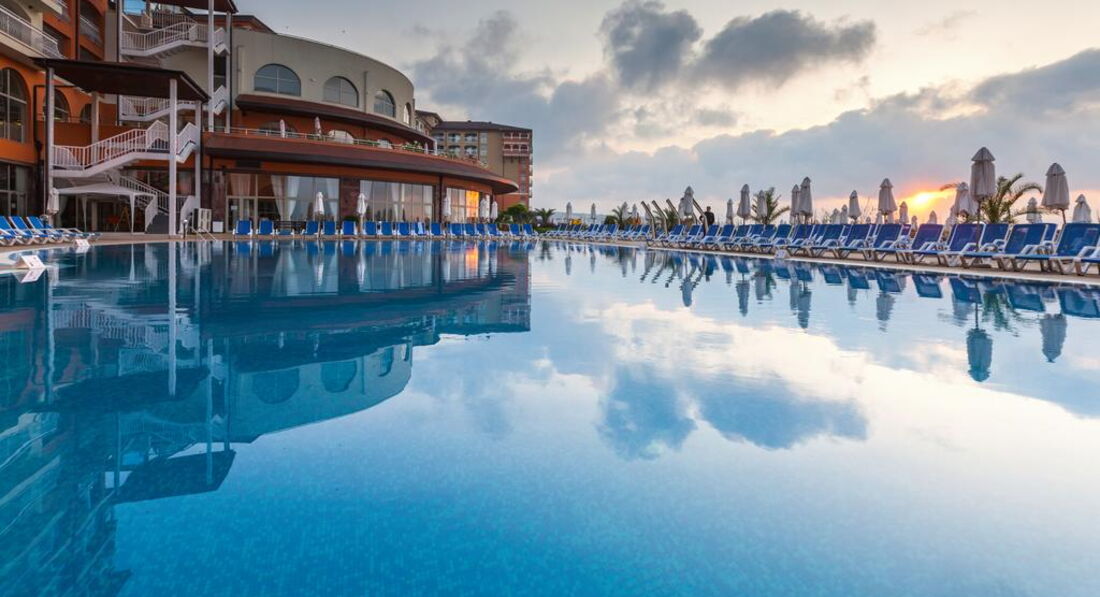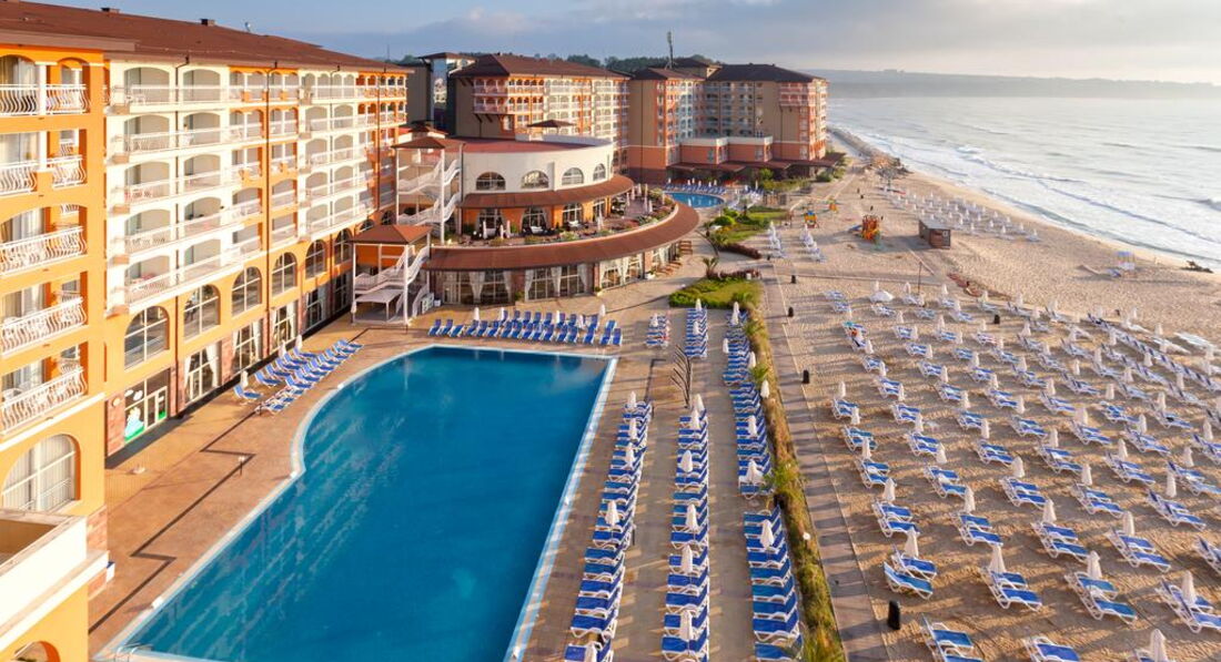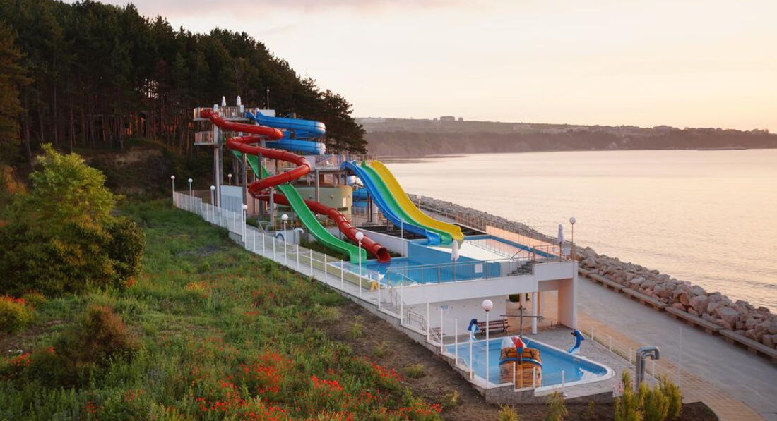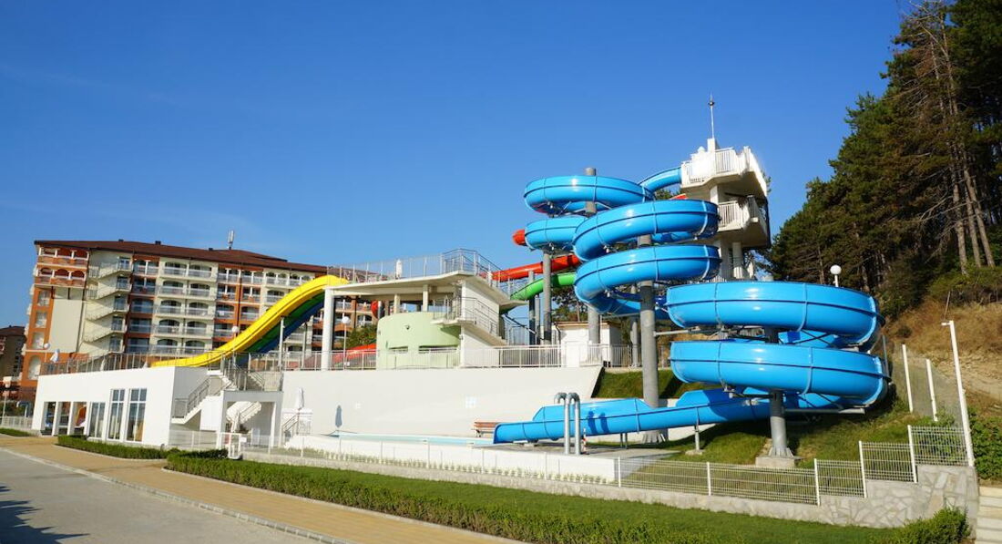 Вот прямо сейчас находимся в этом отеле. В Болгарии впервые.Ехали под девизом-Главное,что бы детям понравилось.Так вот,им нравится. Широкий,песочный пляж,хороший вход в море,прекрасный аквапарк,где практически нет чужих(а мы этого боялись) и вообще,совсем никаких толп и очередей-поднялся и съехал.
