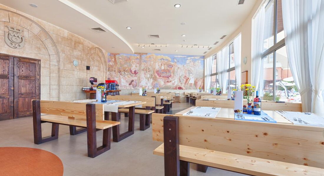 •ресторани a la carte: 2 (тільки вечеря; шведський стіл; за записом: італійська працює з середини травня до кінця вересня; болгарська працює з початку червня до кінця вересня)