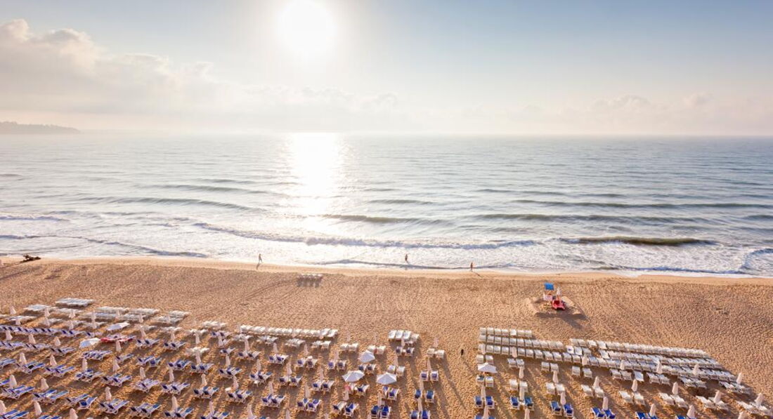 В этом отеле мы отдыхали два года подряд 2014 и 2015 году, оба раза в августе. В Болгарии подходящий климат для деток, по этому ездим именно сюда, а в августе т.к. нет такого пекла как в июле, а вода за лето хорошо прогревается и тёплая при тёплая. Отель выбирала долго и тщательно, потому что ехали первый раз вместе с ребёнком. Я очень рада, что остановились на этом варианте. Отель суперский! До пляжа рукой подать, пляж песчаный, заход в море отличный, лежаков много, но действует правило:"кто первый встал того и тапки", так что если прийти в час пик, это где-то после 9:30, то придётся поискать. Оба раза номер был с видом на море (первый раз нам такой выпал, второй раз мы доплачивали за sea view), только жили первый раз в правом крыле (там более шумно,т.к. над баром, но за закрытым балконом ничего не слышно), второй в левом (дверь на балконе не плотно закрывалась, весь шум было слышно), тут не угадаешь).