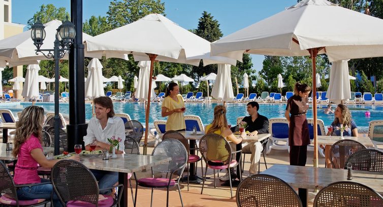 Отдыхали семьей в конце августа. Я, муж и ребенок 5 лет. По погоде: вечерами было прохладно, но это вопросы скорее к климату Болгарии, а не к отелю . Отдыхом остались довольны. Номера хорошие. У нас был боковой вид на море и теннисный корт. Красота, если не смотреть вниз (номер был на 6 этаже) т.к. каждый вечер около 6 вечера приезжала мусорка забирать мусор из ресторана отеля !! Убирали каждый день. Жалоб у меня не было. Чаевые оставляли почти каждый раз. Персонал вежливый и обходительный. Нам ни разу никто не нагрубил. Если возникали вопросы решались быстро.Питание отличное. Да, возможно для маленьких детей хотелось бы большего разнообразия. Но у нас с этим проблем не было.Детский клуб средний, но ребенку нравилось я пару раз наблюдала, скучные ребята!!! Горки понравились, а вот вода в бассейне прохладная на наш взгляд. Единственный минус этого отеля- пляж. Уж очень маленький для Болгарии и постоянно водоросли в воде как каша, а соответственно и запах от них. Но зато в соснах просто рай!