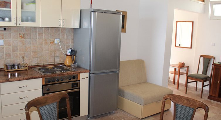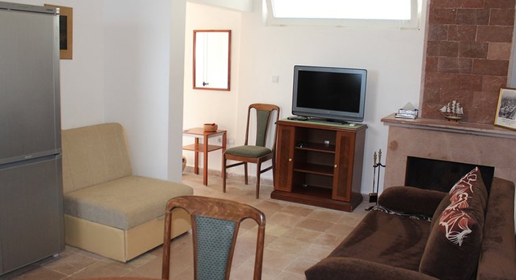 На першому поверсі знаходиться двокімнатний апартамент з прямим виходом на пляж, на другому поверсі 3 двомісні номери.