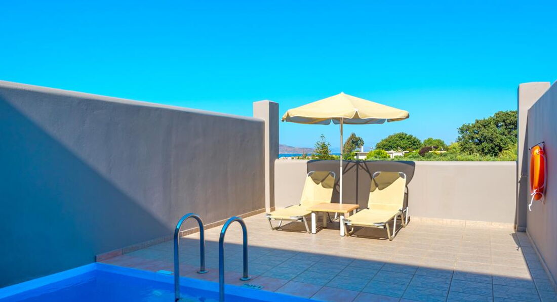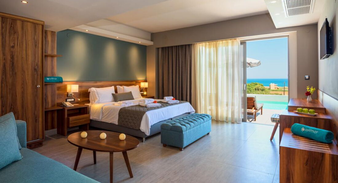 superior suite sea view private pool (вид на море, спальня та вітальня з дверима, осн.ліжко - двоспальне (2 односпальних за запитом), дод.- диван-ліжко, індивідуальний басейн, макс. 4 чол., 60 м2);