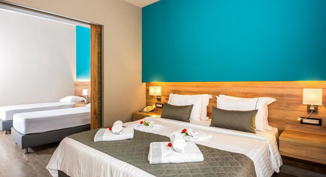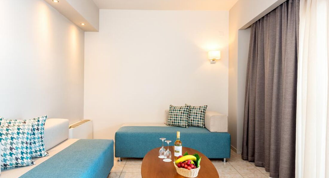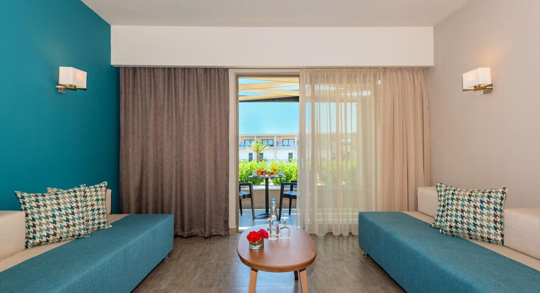 family junior suite (спальня та вітальня з дверима, осн. ліжко – двоспальне (2 односпальні за запитом), дод.- диван-ліжко, макс. 4 чол., 46 м2);