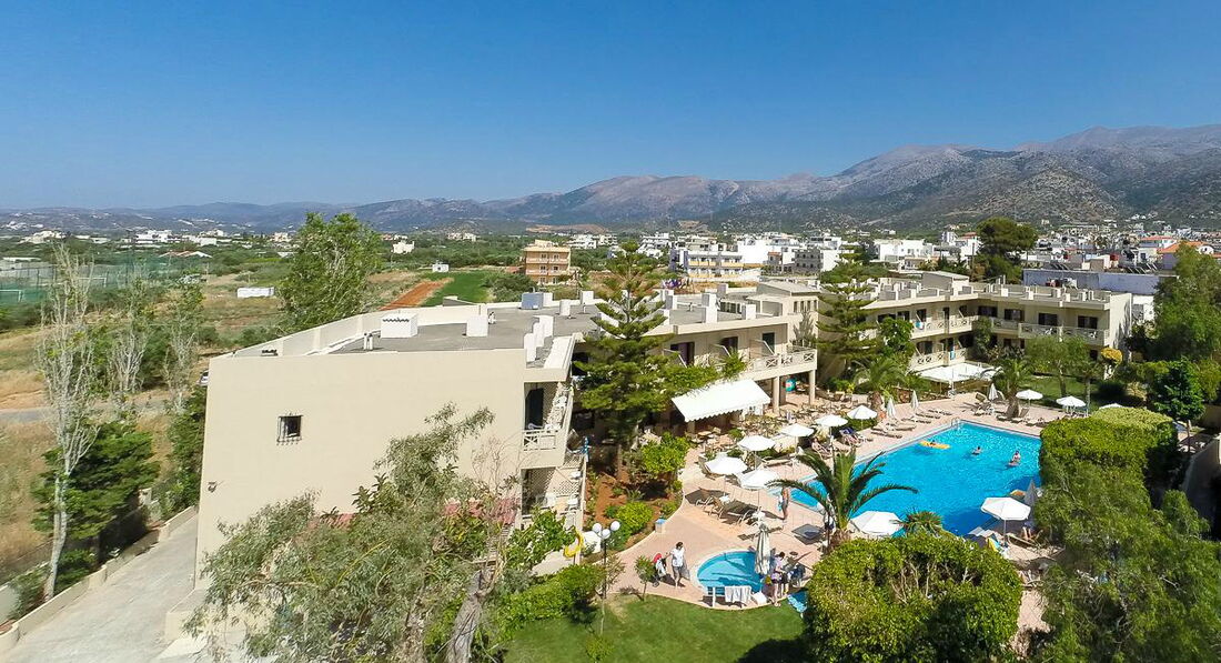 Затишний готель із компактною доглянутою територією. Простий номерний фонд оформлений у сучасному стилі. Вдале розташування у курортному містечку Малія. У пішій доступності від готелю зосереджені магазини, ресторани, бари та нічні клуби. Анімації нема. Рекомендуємо для сімейного відпочинку, у тому числі з дітьми, молодіжного відпочинку та любителів вечірніх розваг.