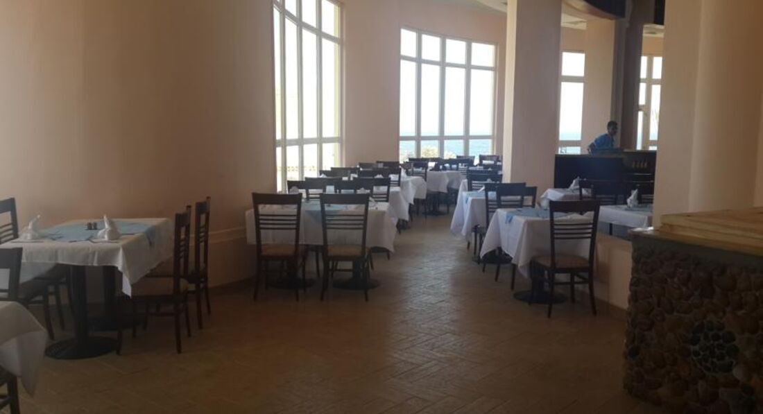 Ресторан по интерьеру соответствует году постройки. Напоминаю этот отель строился не для русских, потому хотя и морально устаревший, но не кичевый, а больше камерный, много дерева. Кухня - идеальная!!! Естественно, повторяю исходя из бюджета отеля. Никакой "мусорной" еды. Все свежайшее. Нет переработанных вчерашних остатков. Ассортимент хотя и невелик, но ежедневно свежайшая говядина в великолепном кулинарном исполнении, свежая ( не мороженная) морская рыба, хотя и мороженное рыбное филе и курица также в изобилии, овощи в основном приготовленные на гриле, ну а для русских - картошка в любом виде, для итальянцев паста и т.д.))) Фрукты в ассортименте - дыня , гранат, финики, виноград, апельсины, манго и т.д. Выпечка - умеренно карамелизированная . И снова таки повторяю - индивидуальное обслуживание. Тебе не приходится вставать за пивом или кофе. Обслуживающий персонал за один день изучает твои вкусы и потребности и все подносит без дополнительного напоминания. Официант стоит возле твоего столика и достаточно кивка головы чтобы исполнить твое желание!!! Только в очень дорогих отелях Марса Алама ( Брейка, Хилтон) такое возможно.