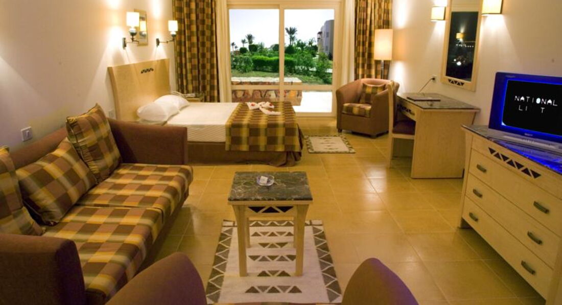 Отдыхал с женой, в целом понравилось. Пробыли неделю. Больше там делать нефиг. Отель небольшой, народу было мало - немцы, русские и поляки (в общей суммме человек 60). Море чистое,бирюзовое и очень много красивых коралов и рыбок. До моря метров 100. Пляж песчанный с деревянными лежаками, зонтиками и плетёными загородками. Номера неплохие, большего не нужно (кондёр, 2 кровати, комоды, зеркало, 2 бра, торшер, на балконе с видом на бассейн 2 стула и столик, туалет, биде, фен, ванна, телек, холодильник и сейф, шкафы). В номерах очень рано убираются. Вечером покусывают комары. Анимации никакой, т.к. народу в отеле мало и эти "великие" аниматоры не хотят ничего делать, совсем обленились. Познакомились с компанией русских и поляков и все вместе весело проводили время, сами себя развлекая, и опустошая местные бары. При отеле есть недорогой дайвинг центр - погружение 35 $ с человека на 1 час. Кормили неочень, приходилось всё выпрашивать, если что-то заканчивалось, а ещё задолбали их специи, которые они добовляют практически во все блюда. Отдельное слово пожалуй стоит сказать про гида при отлеле (Мухамед) - зажравшийся, линивый и жирный, постоянно навязывает свои экскурсии, а если не поедете угрожает (но никого не стоит там бояться, ведите себя как дома - предъявы кидайте, а не поможет - бейте морду). В целом всё неплохо - зелёная территория, 2 бассейна, обалденное море... Остались довольны, но до 4 этот отель еле-еле дотягивает.