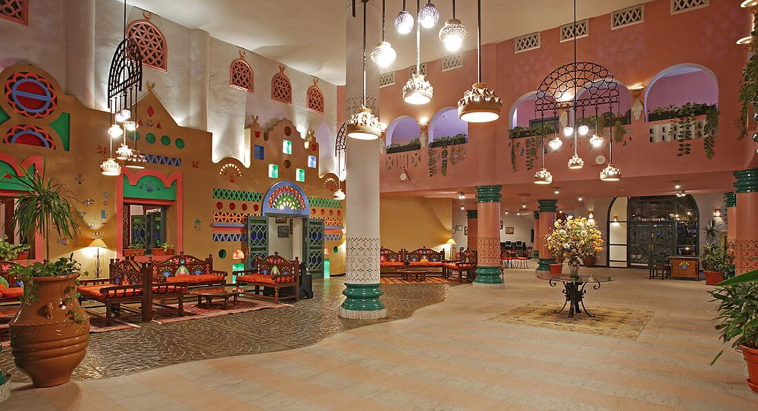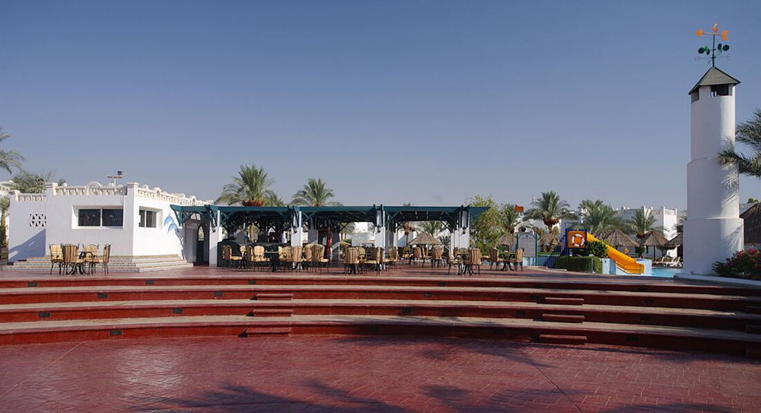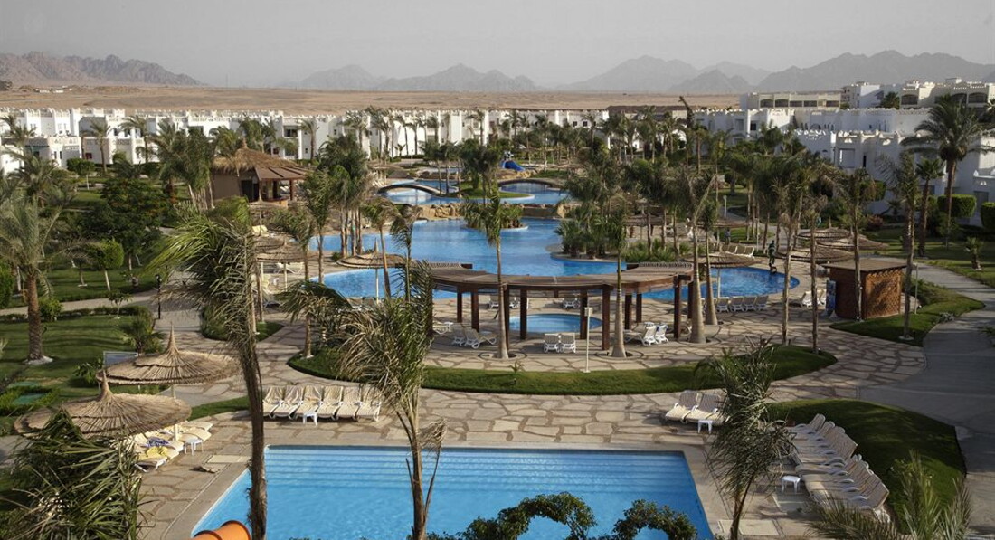 Отличная территория:зеленая, много цветов,два каскада бассейнов, три водные горки.Приветливый доброжелательный персонал,говорят по-русски.Русских отдыхающих процентов 20,много немцев,англичан,итальянцев,возраст разный,многие с детьми.Понравилась анимация:вечерние программы,днем спортивные игры.На территории есть спортзал,вполне нормальный,есть дискотека.2 бесплатных бара с 10 до 12, напитки наливают из бутылок,подают закуски.В номере есть сейф.Недалеко аэропорт,самолеты летают довольно низко,но нам было не до них.Есть два типа номеров:с окнами и без,мы отдали на ресепшен 20 долл и жили "без", но близко к выходу.Если вам не принципиально где жить,советуем не платить,т.к. номера все практически одинаковые.Если хотите номер получше,просите с 1 по 500, или 600-е, 800-е,рядом со всей инфрастуктурой отеля.И,прежде чем отдавать свои кровные,номер стоит посмотреть.Наши соседи давали бутылку водки,тоже вариант.Кормят хорошо,но фруктов мало,как и везде,из вчерашней курицы и яиц делают салат и т.д.,советуем не есть то что вызывает подозрения,возьмите с собой лекарства.До моря 10 минут ходьбы, на пляже есть наш бар (напитки и пиво),вход в море хороший,есть пантон,около берега небольшие кораллы,много красивых рыбешек,советуем взять акватапки. Огромный плюс отеля - он в центре: сразу за отелем есть супермаркеты и аптека,15 мин ходьбы,и вы в Наама Бэй, там рынок,рестораны и клуб ХардРокКафе.Проехать на такси(до 10 долл) или на автобусе (2-3 фунта) - Старый город.Обменник кстати есть на рецепшене: доллары,евро,фунты.Туроператоры предлагают экскурсии,советум торговаться,дают хорошие скидки.Вобщем супермегаотрыва там нет,но интересный отдых вам обеспечен.Возьмите с собой:побольше ср-в для загара,лекарств,ср-ва от комаров,т.к. там это стоит дорого.Желаем приятного отдыха!!!!!