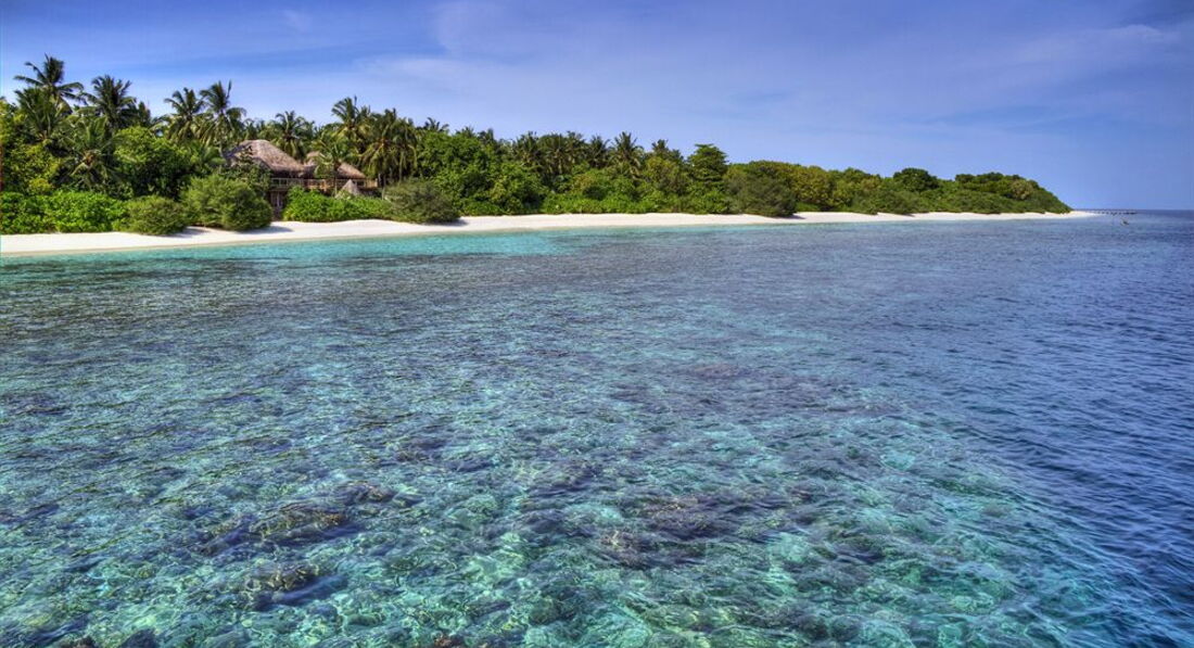 -со стороны сансет больше кораллов, хороший дайвинг (есть ужасно интересные экземпляры), но с этой стороны, в удалении 3 км, виден соседний остров, довольно внушительных размеров - на нем расположена столица атолла Баа;