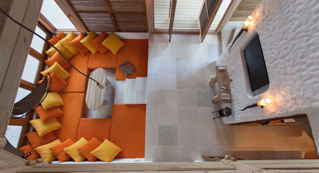 2 Crusoe Suite 1-Bedroom with Pool (645 м2, макс. 4 або 2+3 чол.). Бунгало з приватним садом. Спальня з зоною дитячою, вітальня, обідня зона на відкритому повітрі, зона відпочинку на верхньому поверсі з видом на пляж, гойдалка, басейн.