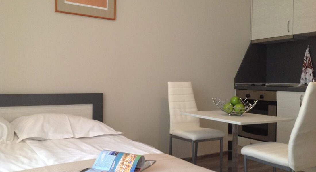Apartment - спальня з одним двоспальним ліжком та вітальня з розкладним диваном, обладнаний кухонний куточок (плита, мікрохвильова піч, холодильник, електрочайник, посуд), суміжні двері, макс. 4 дор., 55 м2.