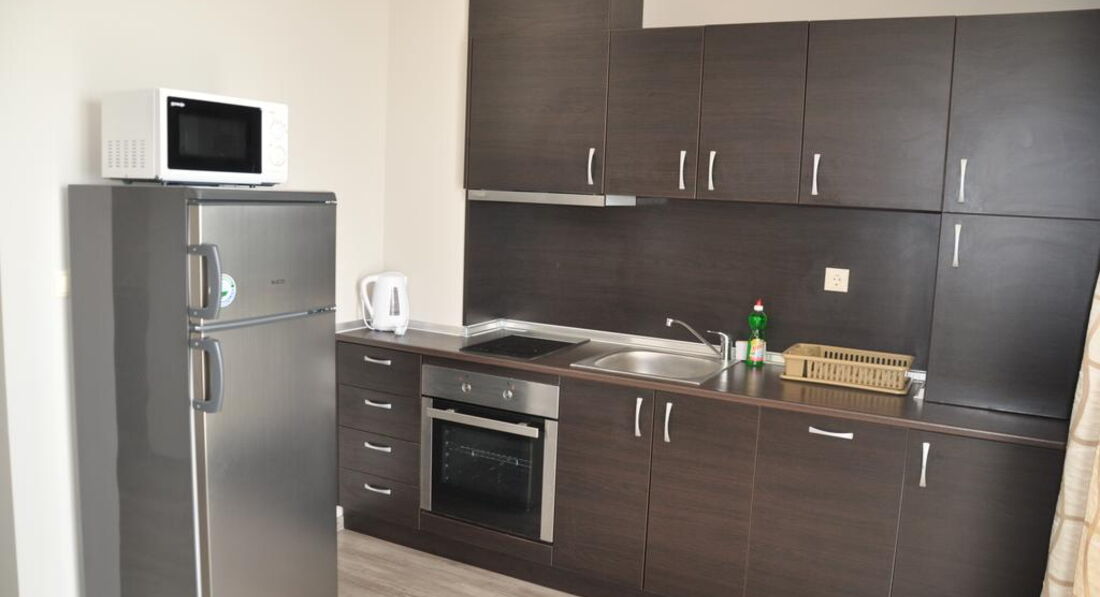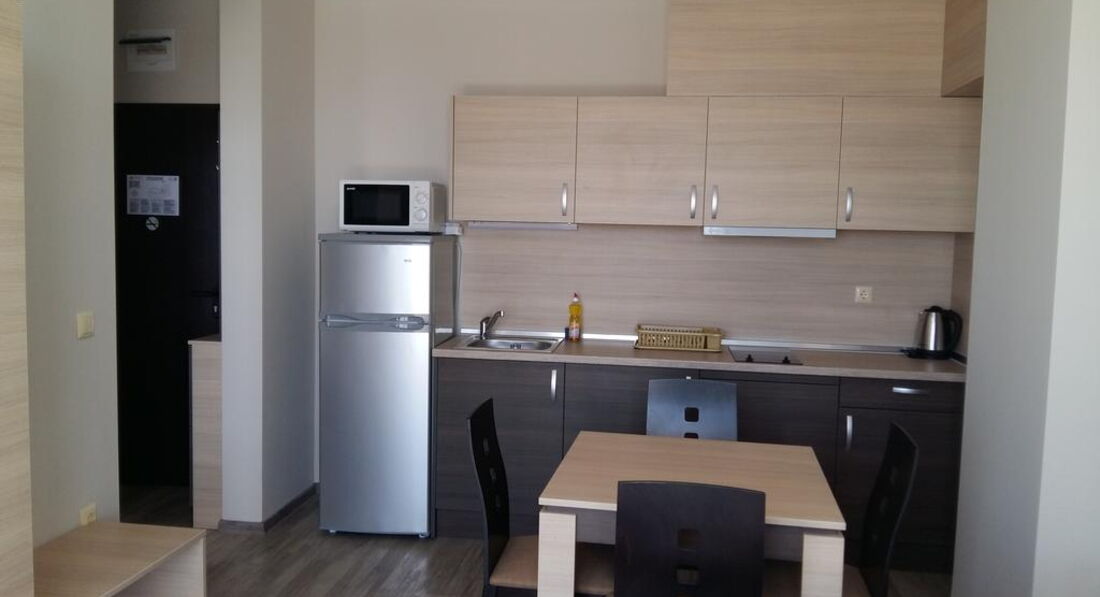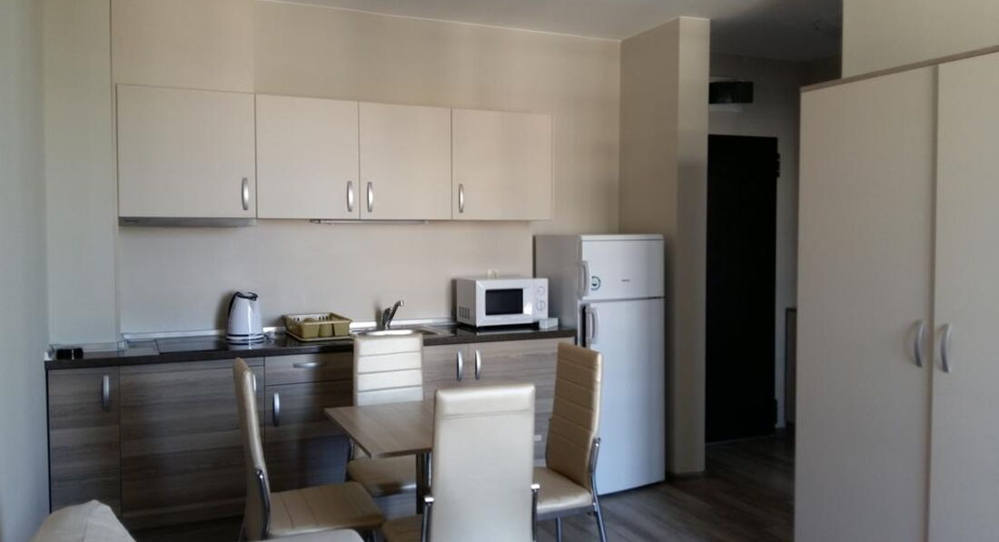 Апартотель розташований у тихому місці, поряд є супермаркет. У сусідніх готелях є ресторани, де можна пообідати чи повечеряти. Рекомендуємо для спокійного відпочинку.