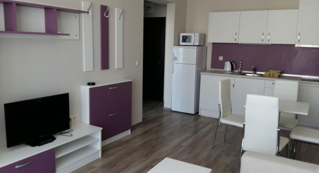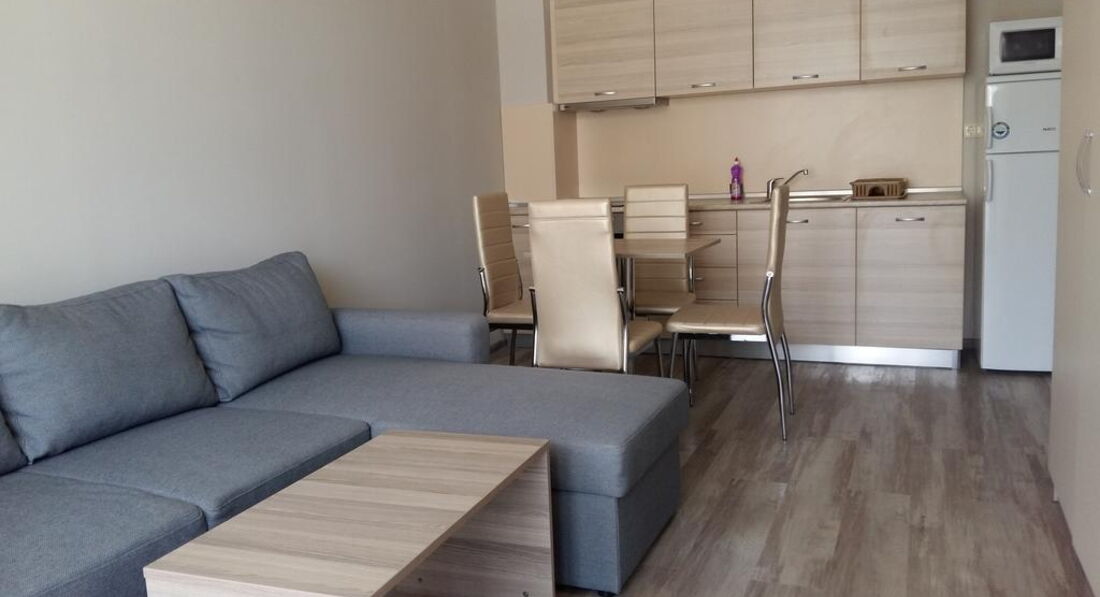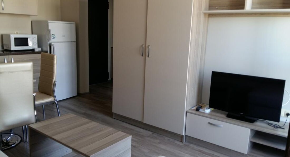 • Apartment (спальня з одним двоспальним ліжком та вітальня з розкладним диваном, обладнаний кухонний куточок (плита, мікрохвильова піч, холодильник, електрочайник, посуд), суміжні двері, макс. 4 чол., 50 м2)