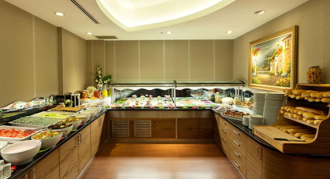 • ресторан пропонує шведський стіл або смачні страви з меню та відмінний сервіс Alacarte познайомлять вас із традиційними стравами турецької та світових кухонь.