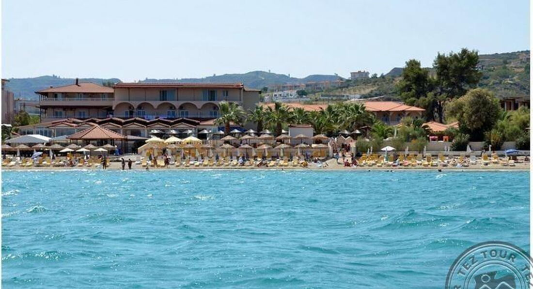 Розташування: на півострові Кассандра, в курортному селищі Ханіоті, за 95 км від аеропорту м. Салоніки, на березі моря.
