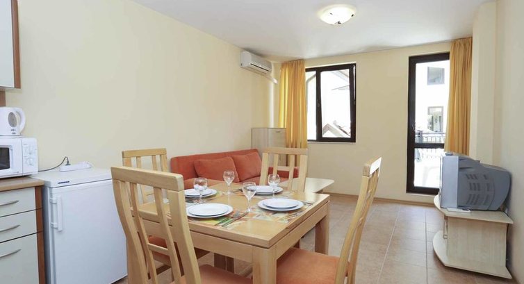 В принципе ехали предполагали, приехали и угадали. Все бы ничего, Апартаменты как апортоменты, но все портят люди. Отношений с персоналом как таковых не было, на контакт не пошли. Приехали ночью, дядя проснулся выдал ключи от 15 номера. Номер на первом этаже со стороны соседнего отеля Табанов. Перед балконом сетка забора за ней чужой . бассейн. Солнце только после обеда. И все прелести соседства с бассейном. Есть номера во двор апартаментов. Попросили администратора Светлану поменять, как могла отказала. Все бы ничего но неискренне и безразлично. И так все десять дней. Номер убирали тяп ляп, причём чаевые забирали каждый день, но на результат слабо отражалось. Потом отказали в парковке автомобиля. Вообщем все лучшее болгарам и остальным европейцам. В этом отеле россияне не жданные гости, как приехали так и уехали...