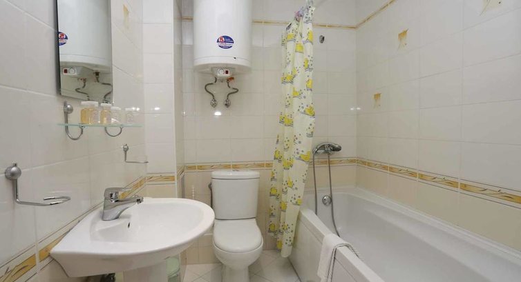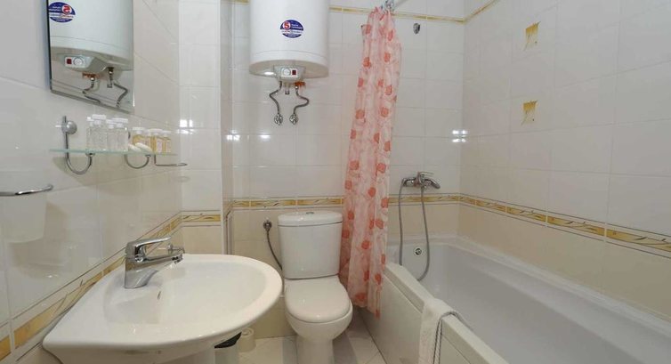 Пятерку за питание поставила сама себе, т.к. питание в отеле не предусмотрено, а оценивать то, чего нет, как-то странно. Мы отдыхали в этом отеле в августе 2014 в 2-спальных аппартаментах (№32). Отличный номер, всё для полноценного проживания. Полностью оборудованная просторная кухня (есть всё вплоть до ситечка и открывалки), микроволновка, электроплита, два просторных балкона со столиком и сушилкой. В кухне-гостиной есть телевизор с несколькими русскими каналами. Санузел с ванной и стиральной машиной. Имеется шампунь, гель для душа, фен, утюг. В обоих комнатах и кухне кондиционеры. Гардеробы, тумбочки, шкафы. Уборщица приходит каждый день. Смена белья и полотенец - каждые 2 дня. Номер очень чистый, светлый, с хорошей отделкой. Единственный минус - открывать балконные двери получалось только у мужа, у меня сил не хватало. Ночью была слышна громкая музыка с набережной до 12 ночи. Она нам не мешала, так как спать мы ложились как раз около 12.