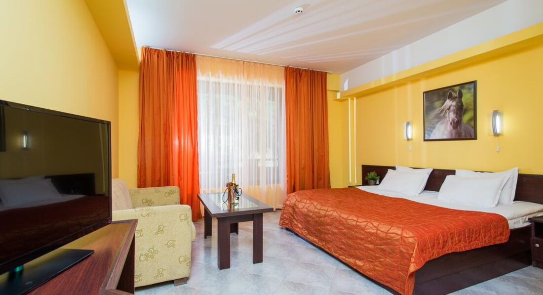 • кондиціонер • Wi-Fi (безкоштовно) • ванна/душ • санвузол • косметичні приналежності • халат • рушники • TV: супутникове • CD-плеєр • телефон • фен • холодильник • прибирання номера: щоденно • зміна білизни: 2 рази на тиждень • зміна рушників Територія та послуги: Відкритий басейн, що підігрівається Розваги та спорт: • більярд • дартс • настільний теніс • прокат велосипедів • тренажерний зал (безкоштовно) • шахи • джакузі (платно) • масаж • відкритий басейн (безкоштовно) • парна (безкоштовно) • сауна (безкоштовно) • тренажерний зал (безкоштовно) Для дітей: • дитяче ліжко • дитячі стільці у ресторані • ігрова кімната • ігровий майданчик Живлення: • ресторан • бар басейну • лобі-бар • система живлення: BB, HB