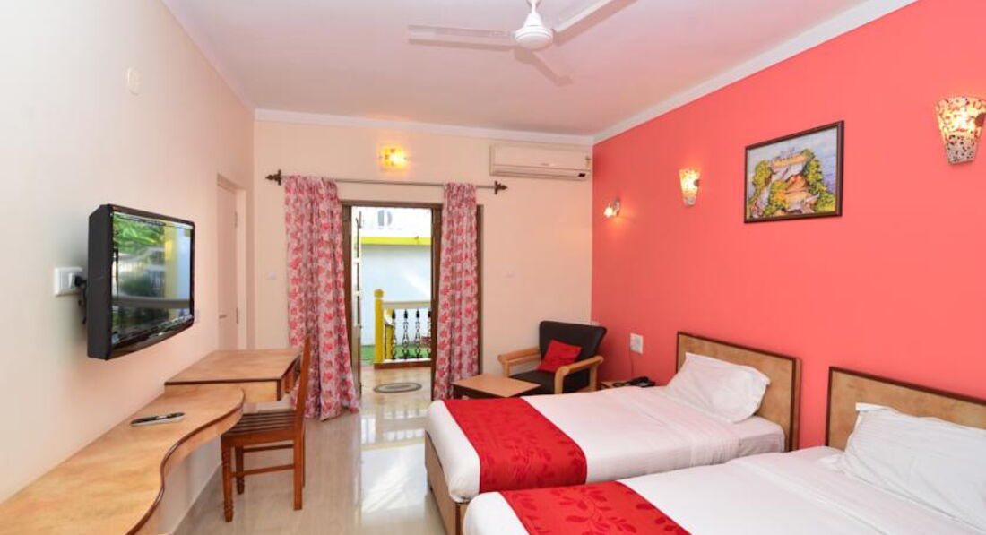 Это мега мега улетное место!!!!!!Индия это то место которое вызывает массу положительных эмоций, меня поймут те кто там был, это место где забываешь дату, день, время, сливается день утро вечер ночь, и не понимаешь где начало где конец всего этого необыкновенного безумия)))))))). А этот отель, одно из мест где чувствуешь себя как в "своей тарелке", очень чисто, везде зелень, очень приветливый персонал, начиная с ресепшена и заканчивая клининг-персоналом. Номера большие, ванные комнаты чистенькие, светленькие, большие. Сравнила 1-о местный номер у знакомой и наш 2-х местный, отличия нет ни какого. Бассейн чистят каждый день, 7 лежаков, вокруг пальмочки... В общем была там с 08.03.2012 по 18.03.2012, сегодня 19.03 а я уже хочу туда, в этот отель, на пляж в Анджуну или Вагатор, в ресторанчики-кафешки, полопать очень вкусной рыбки...мммм......)))))))))) А про рынки могу сказать одно если вам сказали цену 300 рупий, смело говорите 150, потому что цены в пополаме они завышают, торговаться спорить они любят, ворчат но сбрасывают. В первый день взяли с подружкой по скутеру и объездили все вокруг, последний день ходили пешком и поняли, что ездить безопасней, у них отсутствуют тротуары. Ну и самое главное не забываем про личную гигиену, моем чаще руки, что бы провести отпуск не на фаянцевом друге, а на пляже)))))Короче езжайте не пожалеете, а отель как я сказала, самый самый, в ноябре планирую еще поехать и остановлюсь только в этом отеле, до пляжа Анджуну не далеко, и до Вагатора можно доехать за 7 минут на скутере. Кстати завтрак в общем разнообразный, тосты, джем, чай, кофе, блинчики с медом, рисовые лепешки, тосты в яйце, блюда не в один день представлены конечно, каждый день нарезаны арбуз и папайя. Рядом с отелем супермаркет, много зелени и нет шума от рынка. В общем всем советую.Есть стоянка для скутера, бесплатная. Меня переполняют эмоции, написать и передать все впечатления не могу, поэтому такой небольшой каламбур не по порядку))))