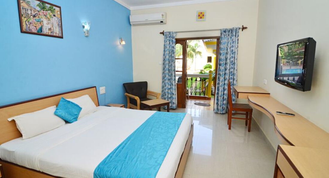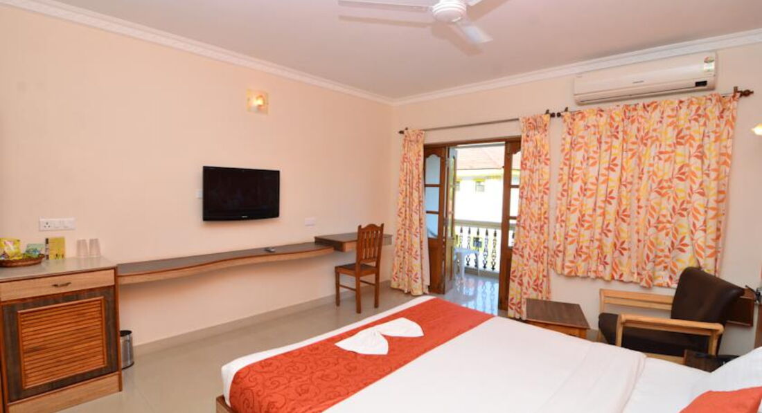 Номера отеля просторные, чистые, опрятные, всё новое: мебель (достаточно простого дизайна), кондиционер и вентилятор, ж/к телевизор (88 каналов и ни одного на русском языке), большой шкаф, холодильник с мини баром, просторная ванная комната; сейфа, кажется, не было и фена то же. В номерах нет того ужаса, что я читала в других отзывах про старые отели на Гоа: грязных и вонючих полотенец, разваливающейся и скрипящей мебели, текущего и шумного кондиционера, клопов и тараканов в номере, кучи пыли, плесени, грязи, оставшейся от предыдущих постояльцев и т.д.