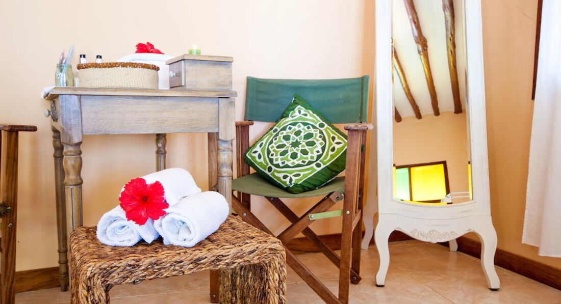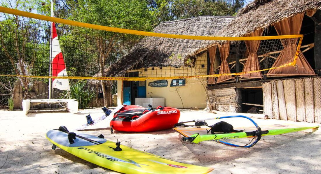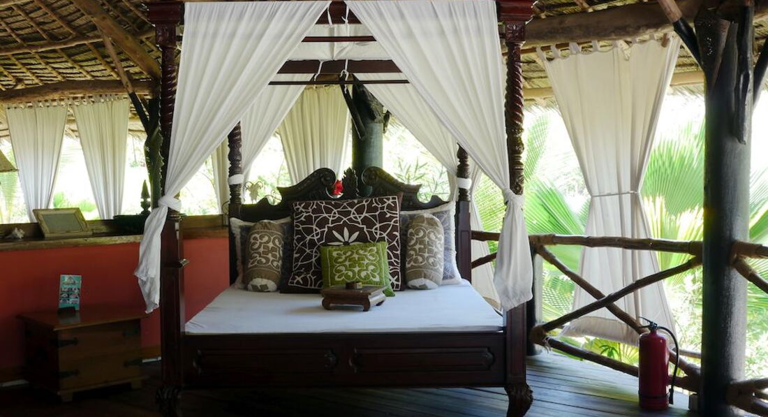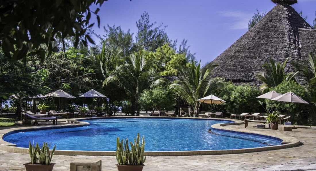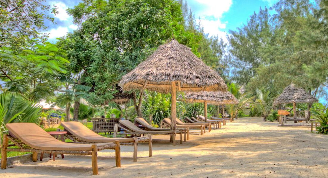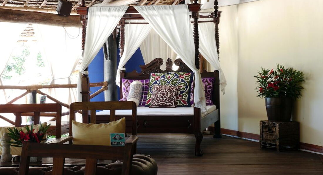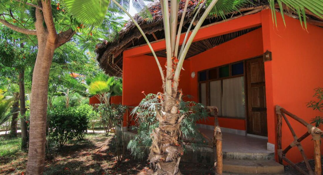 Family Bungalow (Family Bungalow оточені великим тропічним садом з більш ніж 3000 різних екзотичних дерев, рослин та квітів. Просторі номери (110 кв.м.) пропонують високий рівень комфорту. Номери красиво оформлені та повністю обладнані унікальним поєднанням Занзібару меблів, типових кондиціонер, стельові вентилятори, ванні кімнати з відкритою душовою кабіною та окремим туалетом Насолодіться дивовижним видом на наш тропічний сад з вашими двома терасами (18 кв.м.) Наші сімейні бунгало із суміжними дверима між кімнатами для дітей та батьків. )