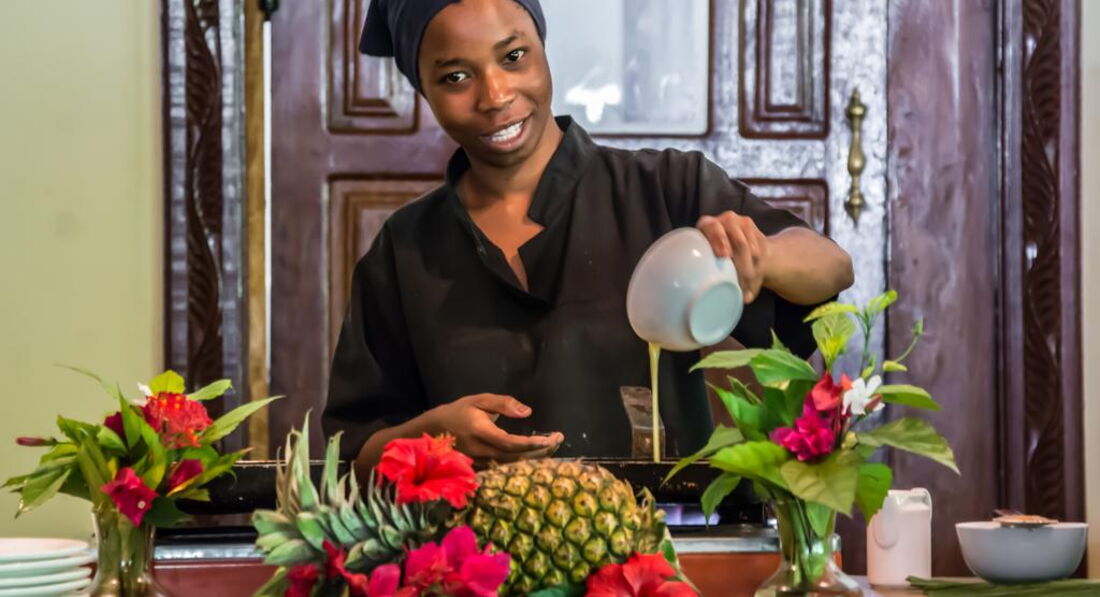 Розташування: на південному узбережжі острова Занзібар, у селі Джамбіані, до міжнародного аеропорту Занзібар та Кам'яного міста, найстарішої частини міста Занзібар 53 км.