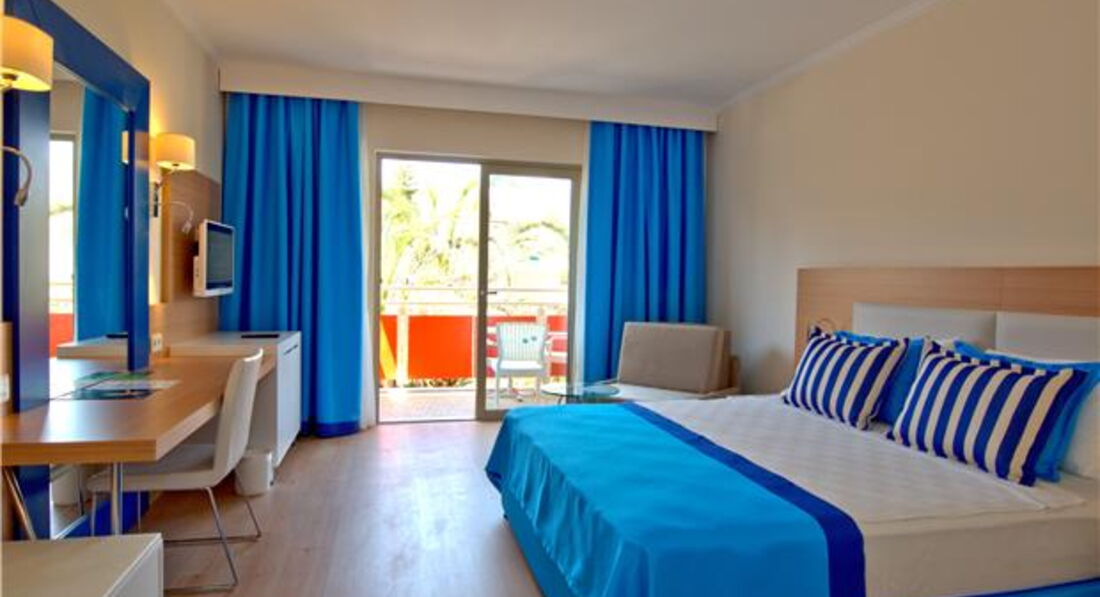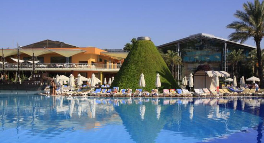 В данном отеле отдыхали в 2017 году с 1 июня по 13 июня от туроператора ТУИ. Я с супругой и с сыном 11 лет. Тур бронировали в марте месяце т.к. в летний период сюда просто не попасть. При размещении проблем просто не было, номер дали двух комнатный на троих. В комнатах тв и выход на балкон. Номер чистый и светлый, не обшарпанный, убирали номер каждый день . По всем вопросам обращались к своему гиду Рустаму, русским языком владеет хорошо. Территория отеля большая, утопает в зелени и ухоженная. Море в шаговой доступности от отеля, заход песчаный. Территория отеля состоит из девяти четырехэтажных корпусов. Вместе с нами отдыхали Немцы, Англичане, Чехи, Белорусы и Украинцы. На территории имеется свой большой и современный аквапарк и разумеется большой бассейн с пресной водой. Отдельное спасибо большой команде поваров!!! Кормили вкусной и разнообразной едой. Про ротовирусную инфекцию и не слыхали, хотя и брали с собой различные лекарства. При отеле имеются всякие магазинчики, но мы ездили на маршрутке №2 в поселок Маганафт и там закупали трикотаж и сладости, стоит там все в разы дешевле!!! Расплачивались везде кредиткой, очень удобно. А обратно в отель возвращались на №10, стоимость проезда с человека 1 доллар, ехать минут 20. Автобусная остановка находится перед отелем. Обслуживающий персонал в отеле вежливый и гостеприимный!!! Ездили на две экскурсии. Первая в Белек в аквапарк! Это современный и огромный аквапарк с 62 различными горками, с 10 утра и до 16 часов. Плюс еще кроме горок 40 минутное представление в дельфинарии, который там и находится!!! Вторая экскурсия это прогулка на пиратском корабле, где с детишками занимаются аниматоры по поиску клада! На обратном пути детям была устроена пенная дискотека!!! В общем все 13 дней мы провели просто супер!!! Чего и Вам желаем!!!