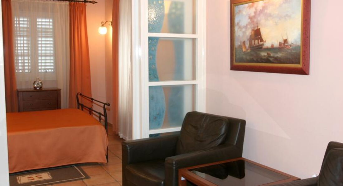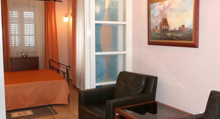 B APARTAMENT: Двокімнатний номер, у спальні французька рувати, у вітальні диван та два крісла, кондиціонер, сейф (безкоштовний), кабельне телебачення, телефон, доступ до інтернету, балкон, вид на затоку, душ/ванна, фен, косметика (32 м2 ). Максимальне розміщення-4 особи.