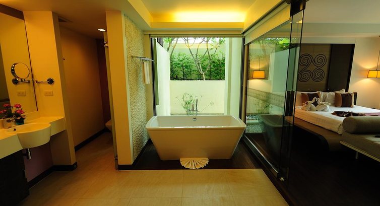 Типи номерів: 43 Deluxe Room (вид на сад чи море, макс. 2+1 чол., 44 м2) 23 Grand Deluxe (вид на сад чи море, макс. 2+1 чол., 44 м2) 14 Pool Room (нижні поверхи, приватний басейн 2 х 3 м, макс. 2+1 чол., 44 м2) 8 Junior Suite (вид на сад чи море, макс. 2+2 чол., Кутові номери, вітальня та спальня окремо, 55 м2) 8 Family Suite (вид на сад чи море, макс. 4+2 чол., Вітальня з кухнею, спальня окремо, 86 м2) 8 Pool Villa Beach (розташовані на пляжі, макс. 2+1 чол., Вітальня, спальня окремо, приватний басейн 3 х 4 м, 164 м2)У номері: