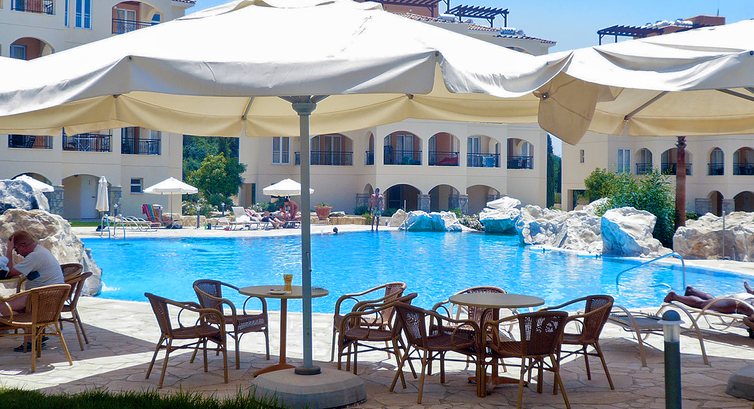 Отдыхали в августе с мужем в этом отелем. Погода супер, настроение тоже. Но...Далеко от моря, вернее от пляжа!! Ожидаемого 10 мин. ходьбы до моря и хоть издалека увидеть море-нет!! море даже не видно из отеля! Хотя в целом отель построен выше уровня моря как бы на горе. и Сама архитектура отеля довольно-таки интересная, очень местная я бы сказала. Все необходимое в отеле есть. Бассейн небольшой, но неплохой, всем хватало места. Тренажерный зал со всем необходимым. Сауна нерабочая почему-то. крытый бассейн в тренажерном зале отвратный. Питание так себе, скудно но поесть можно. Выбор просто небольшой, а так утром позавтракать можно, да и поужинать иногда тоже ходили,все вроде живы )). Номера.. ну как кому повезет, у нас был двухкомнатный с кухней, все ок, но ванная комната оставляла желать лучшего. Что касается персонала, то у них просто бесконечная фиеста так сказать. работать вообще не любят. Убирают как получится и когда получится, смена белья тоже капец можно и не дождаться что придут. Вообщем мы все разузнали у гида Пегаса Екатерины, и ходили сами (зато каждый день) меняли полотенца сколько угодно, и постельное, и новые запечатанные пластиковые ведра, швабры, тряпки. Конечно это ужас ехать в отпуск чтобы еще и убираться там, но к сожалению тур взяли в последний момент, и на мой взгляд, уж лучше сделать все самому чем ждать такой никчемный персонал. Хотя за 12 дней к нам пару раз заглядывала горничная. Так же и при въезде в номер, проверьте все ли есть у вас в номере что заявлено, при въезде у нас не оказалось холодильника, но нам быстро его принесли. А вот соседи, не сообщившие о недостатках, так и сидели несколько дней в ожидании чуда. Вообщем то по отелю все. Море.. До моря можно конечно спуститься пешком минут 15-20, но берег там ни для плаваний. большие волны,пляжа нет. камни, обрыв. но если по берегу пройти чуть дальше то есть вроде как пляж, но волны. Поэтому берите машину, или в отеле ходит трансфер, до корал бэй, там все отлично. и песок и море и кафе и цена за шезлонги. Отель рекомендую для активных туристов. Берите машину, берите экскурсии, гуляйте катайтесь по Кипру там есть очень красивые места (рядом гробницы, в центре пафоса парк, в котором до сих пор ведутся раскопки) и шикарные пляжи как из рекламы баунти (но добраться до них можно на авто или по воде). Кухня отдельная тема, все вкусно, мезе и вино супер. А в целом все супер, ведь главное настроение.